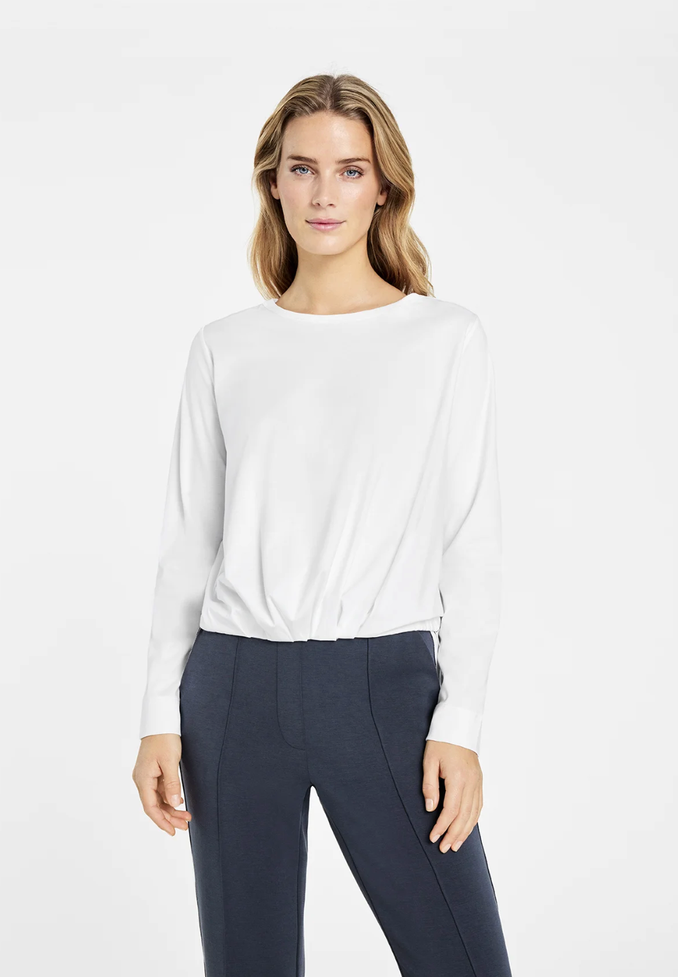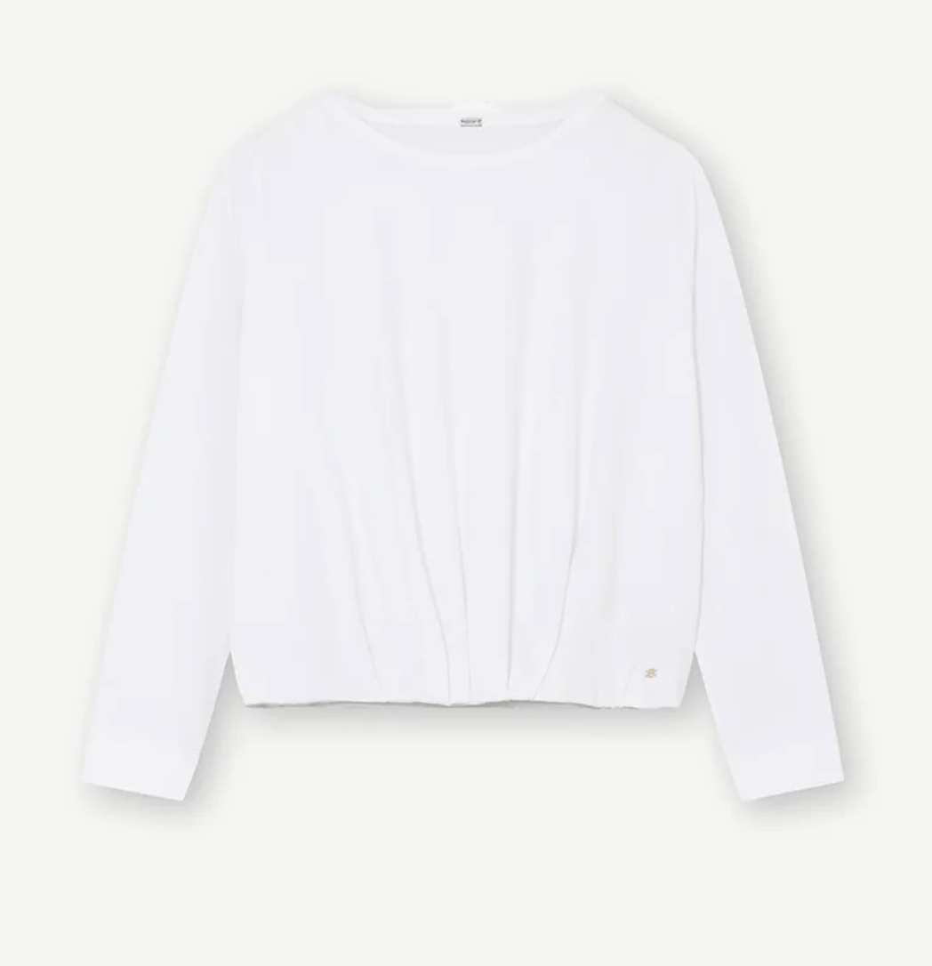 Regular price €109.00 Save 0%Gustav White Cotton Blend Long Sleeve Bubble Hem T-Shirt.