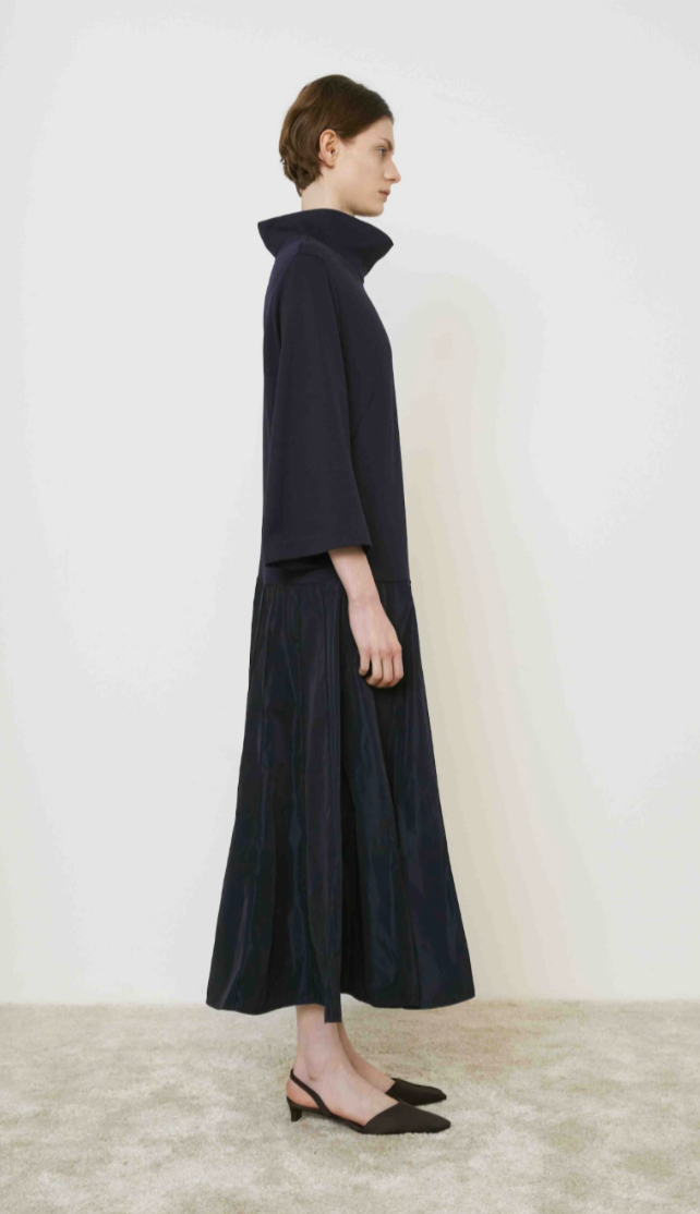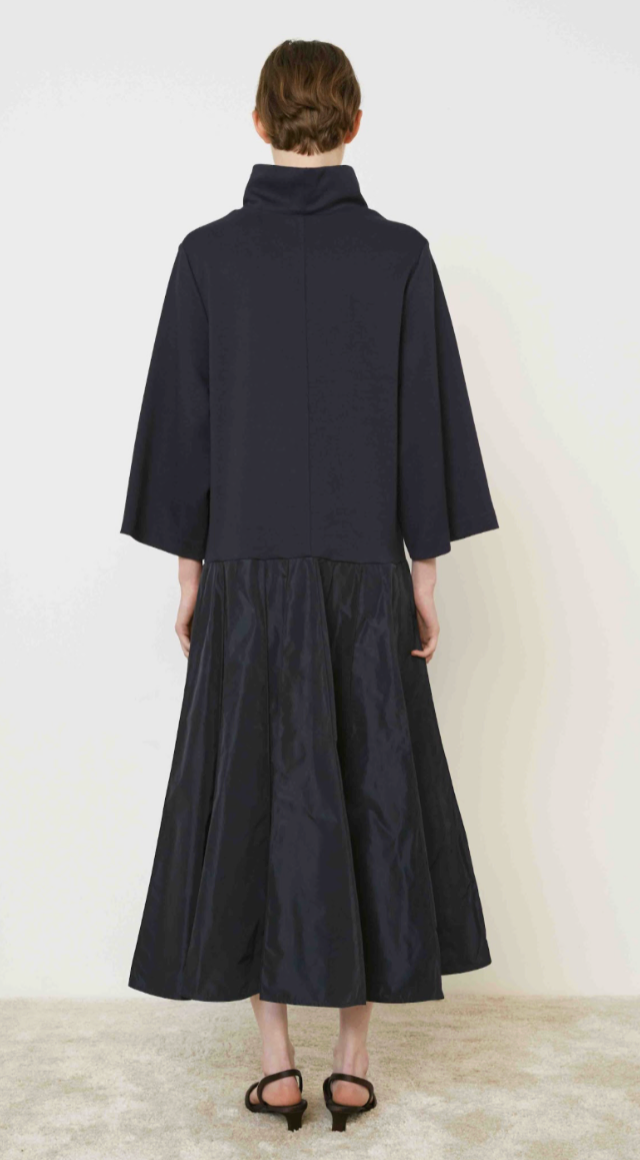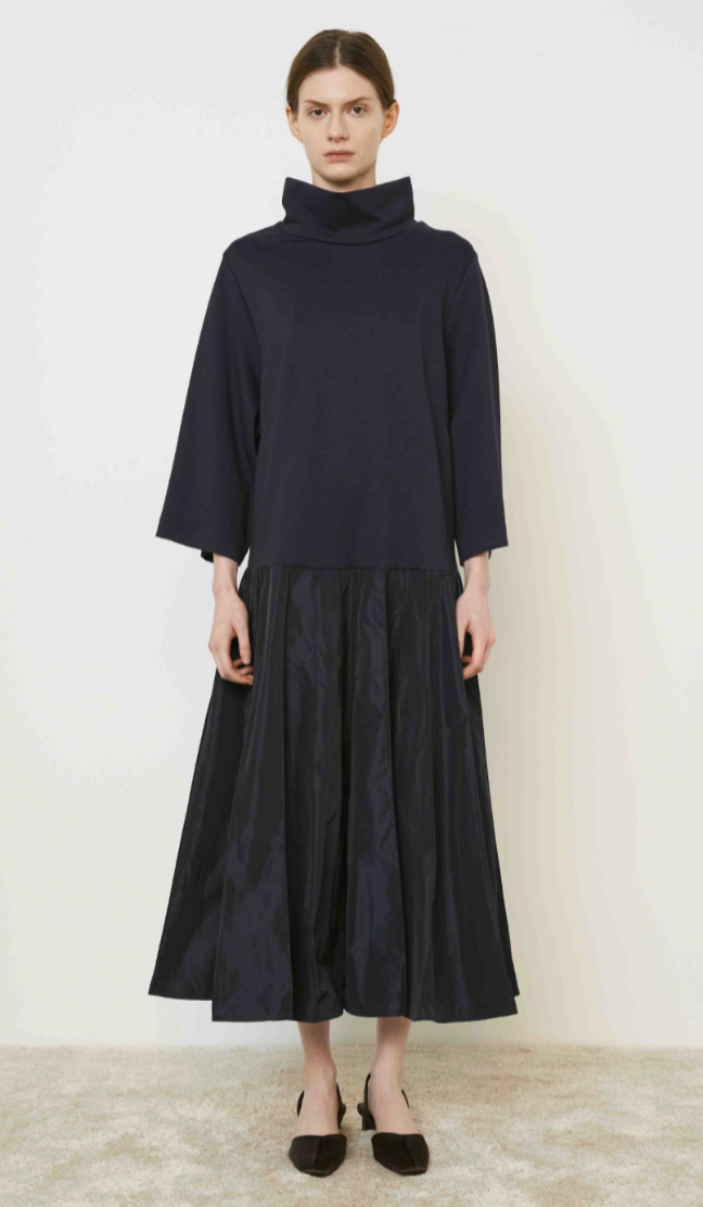 Regular price €270.00 Save 0%MeiMeij Blue Parisian Contrasting Taffeta Fabric Long Turtleneck Dress.