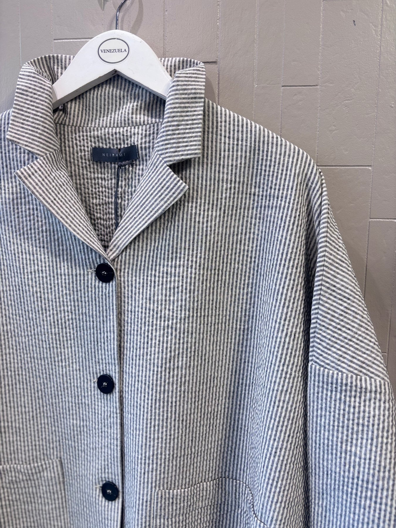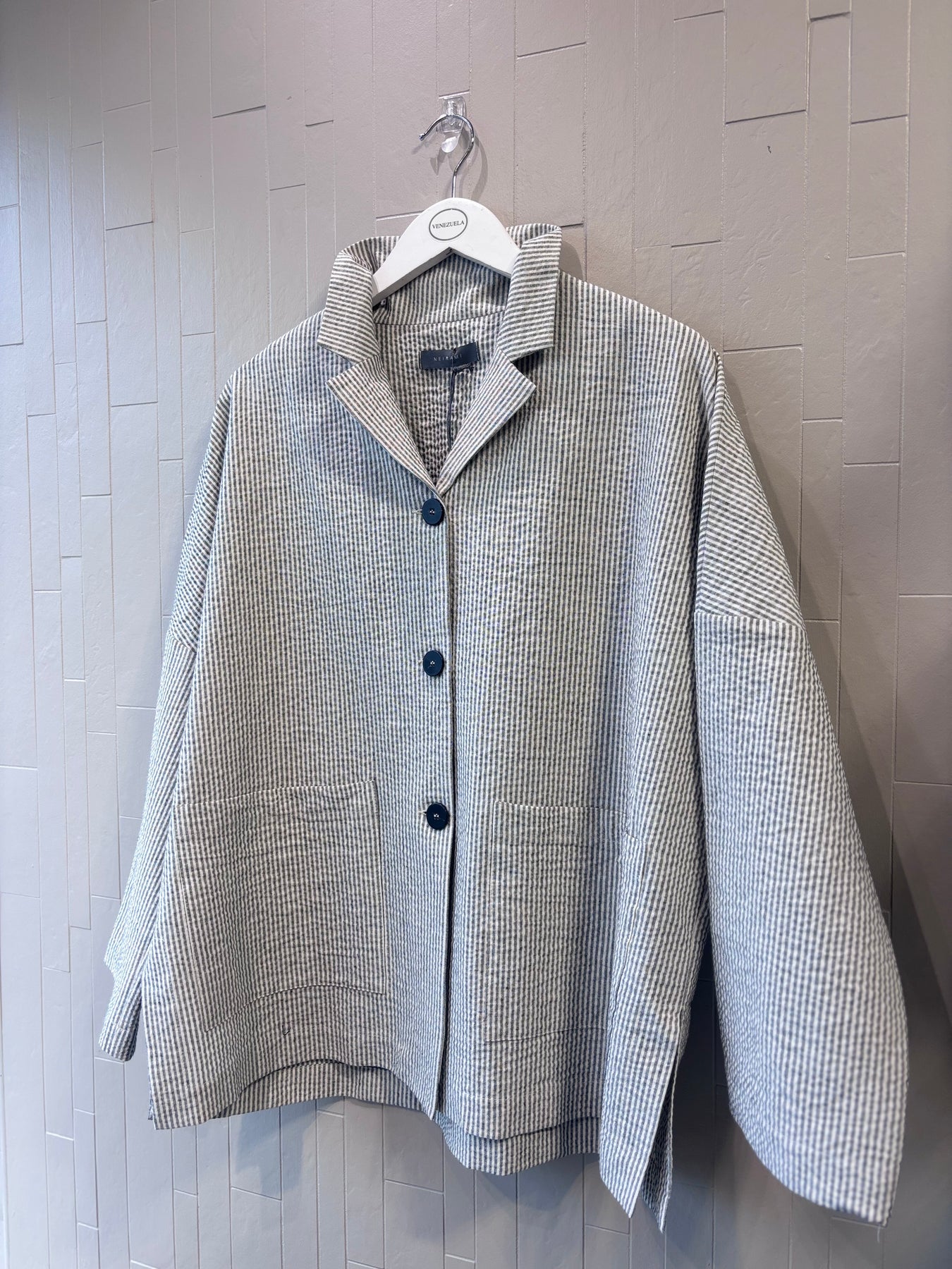 Regular price €215.00 Save 0%Neirami Shell/Black Stripe Cotton Blend Flared Over Jacket.