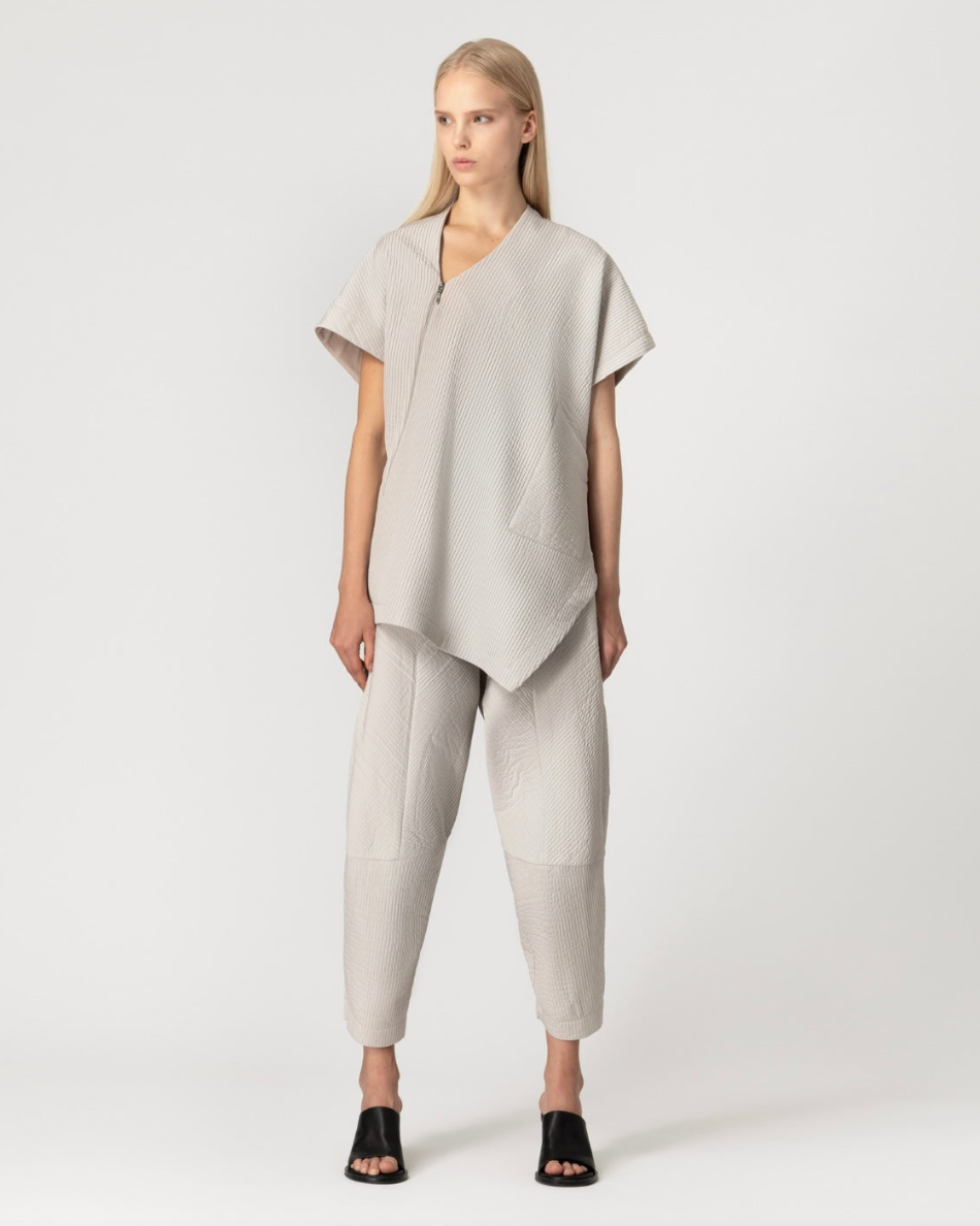 Regular price €185.00 Save 0%Lotus Eaters Beige Soft Feel Asymmetric Cut Capped Sleeve Zip Up Jacket.