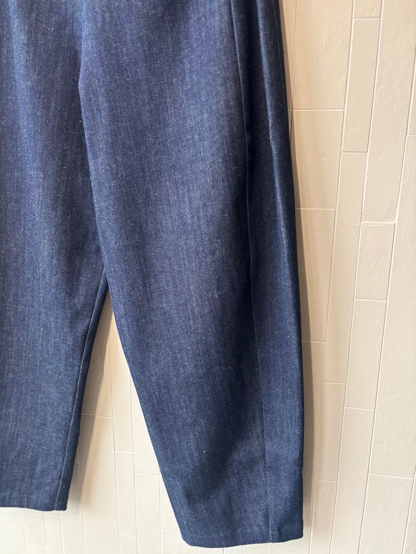 Regular price €199.00 Save 0%Neirmai Dark Blue Pleated Front Barrel Leg Denim Jean.