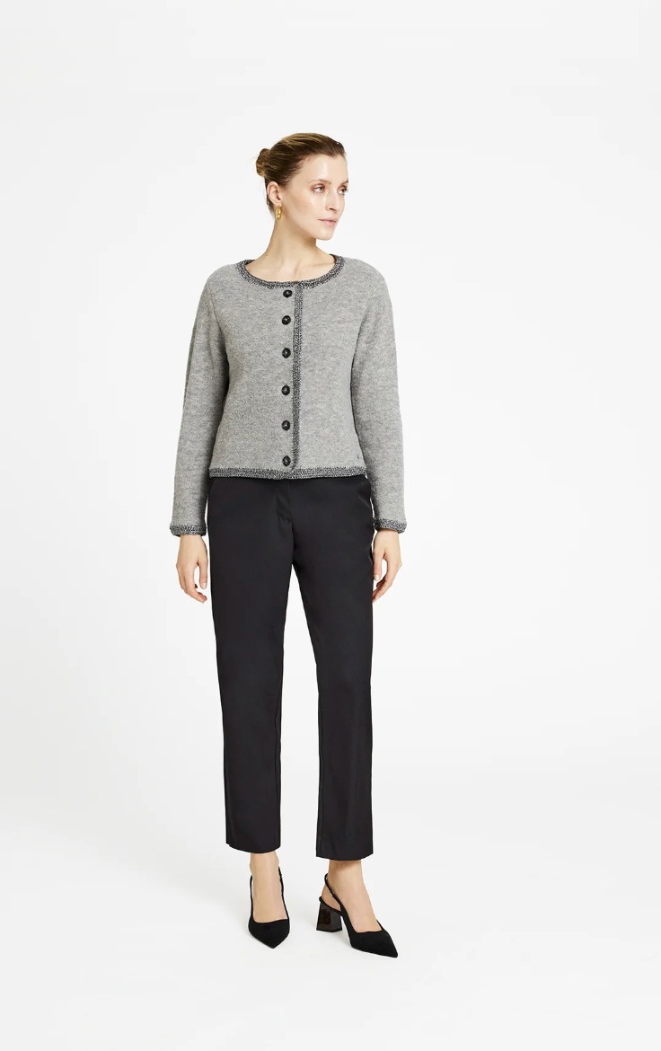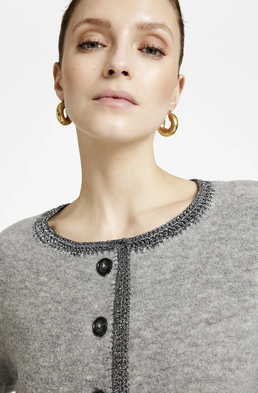 Regular price €229.00 Save 0%Gustav Elephant Grey Lurex Trim Cardigan.
