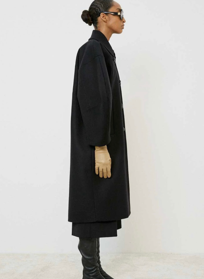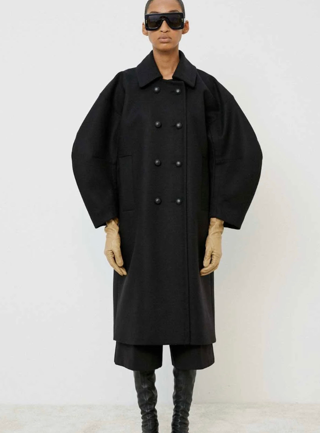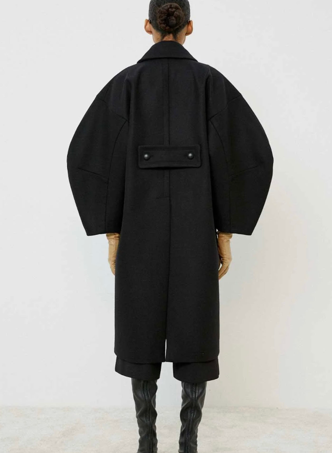 Regular price €730.00 Save 0%MeiMeij Black Double Breasted Fleece Wool Belt Pocket Coat With Statement Balloon Sleeve.
