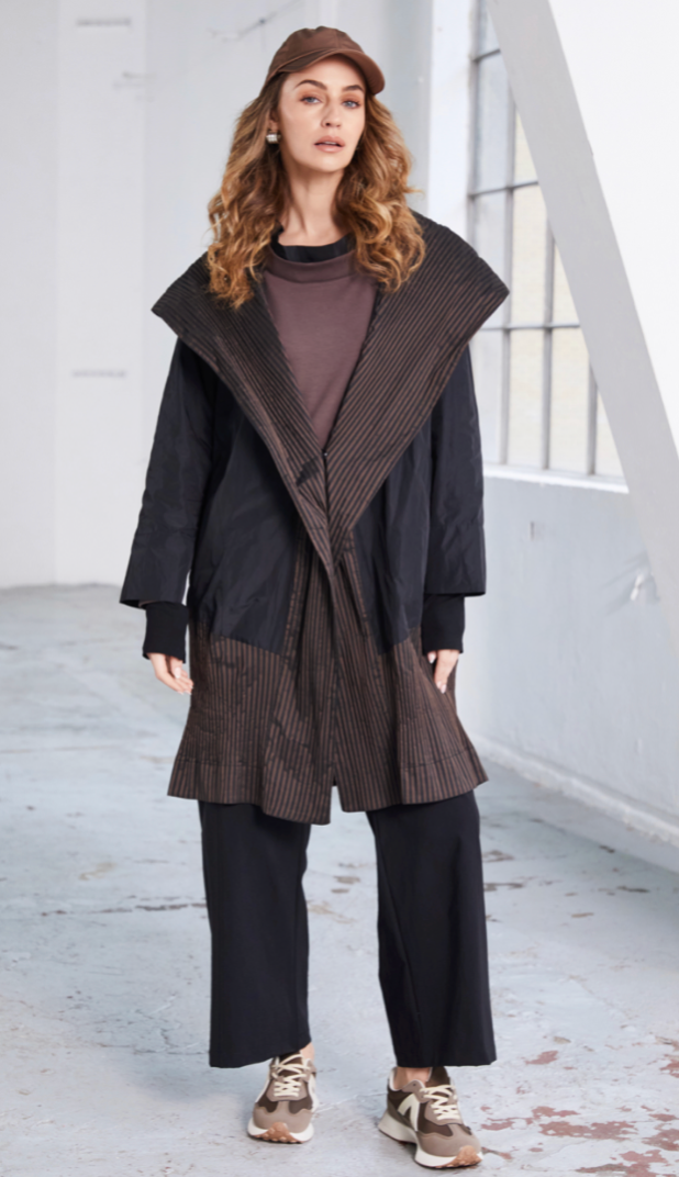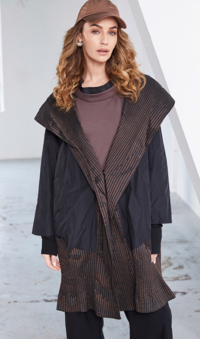 Regular price €240.00 Save 0%Naya Long Line Stripe Jacket With Contrast Hem Hood/Collar.