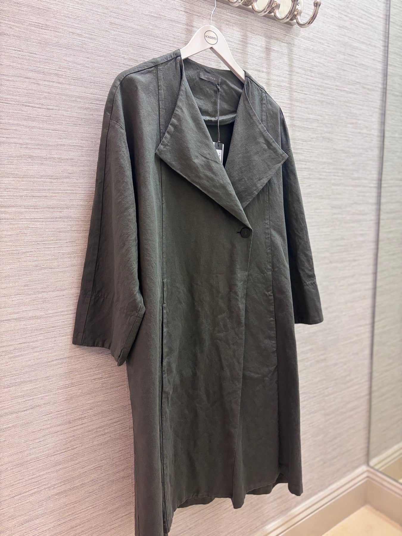 Regular price €295.00 Save 0%Neirami Forest Green Linen Loose Fit Duster Coat.