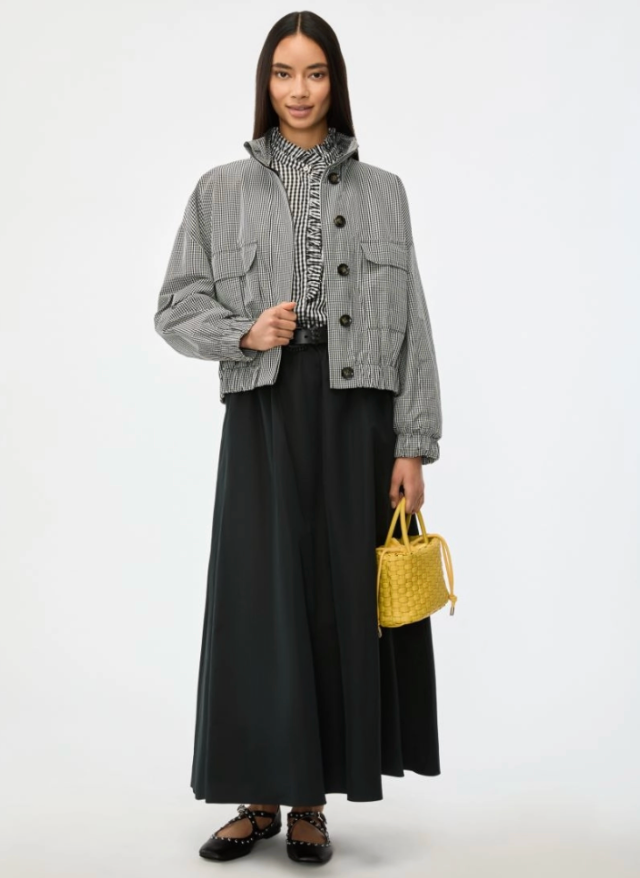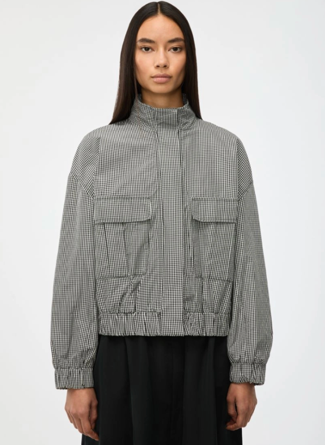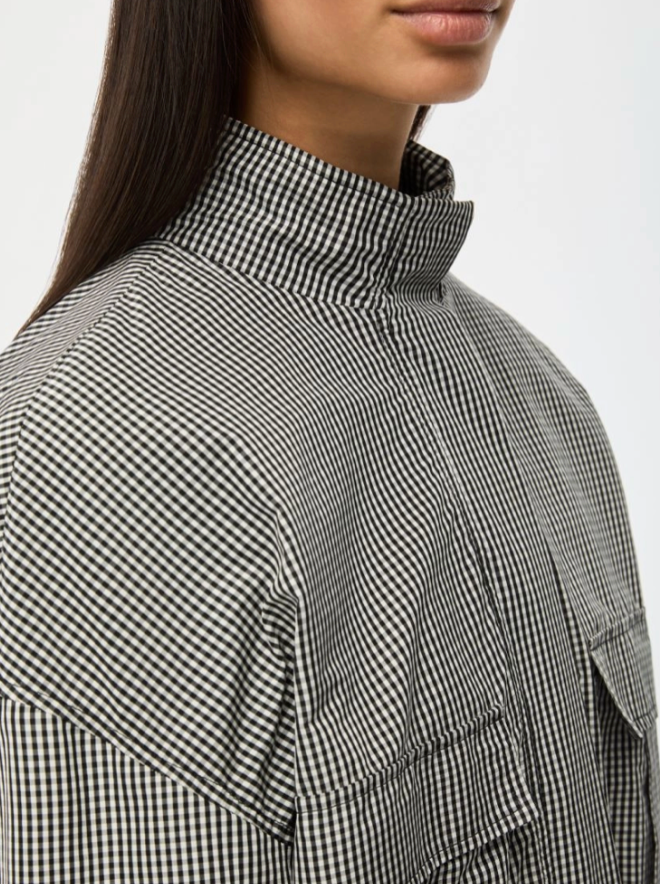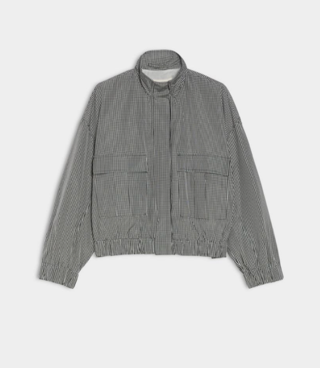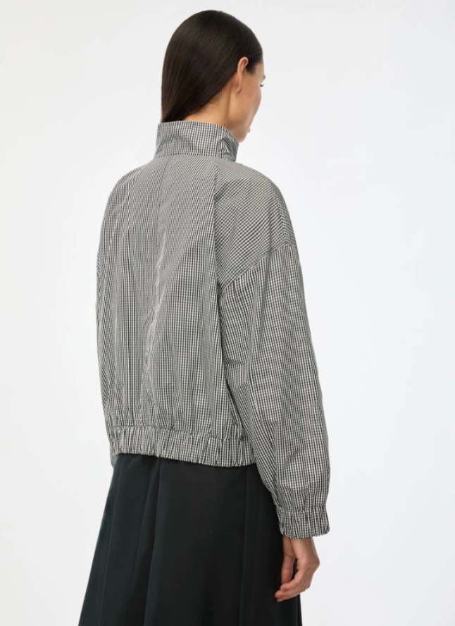 Regular price €250.00 Save 0%i Blues Black/White Gingham Cotton Blend Taffeta High Neck Jacket With Elasticated Waist.