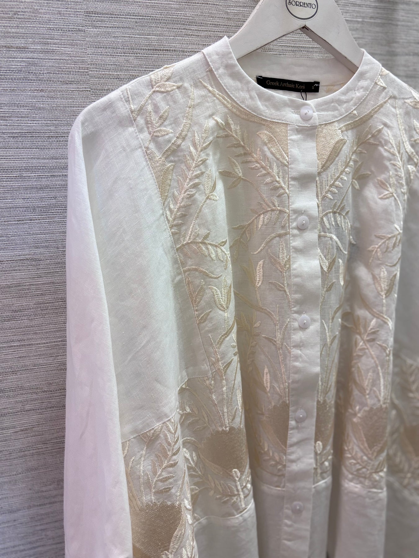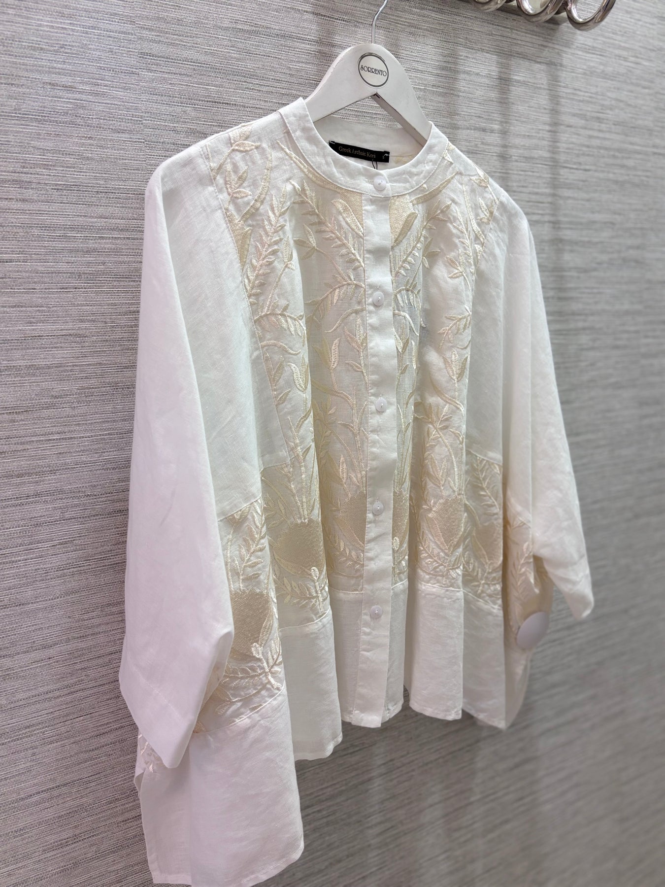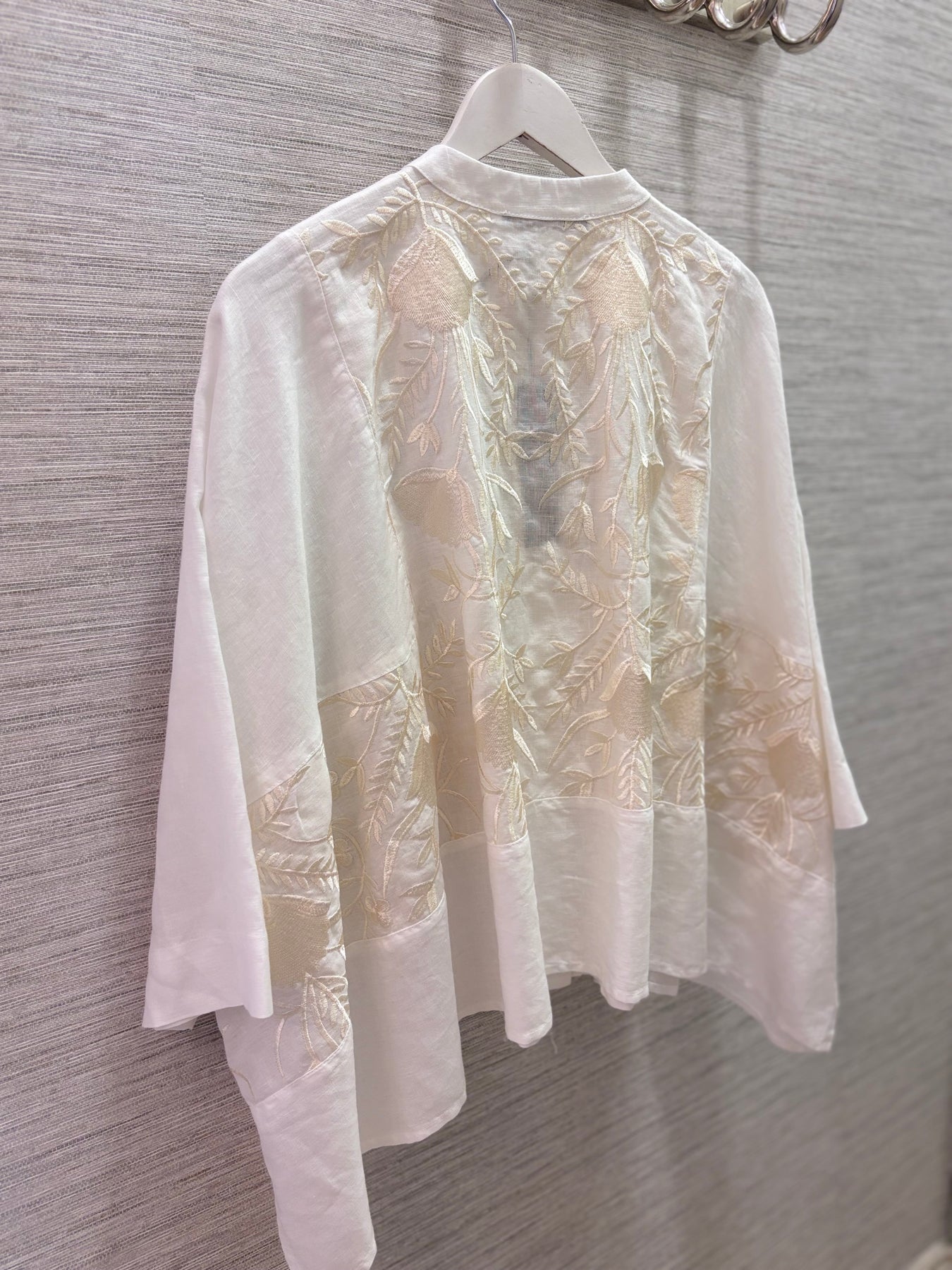 Regular price €189.00 Save 0%Kori White/Champagne Linen Blossom Asymmetric Cut Jacket.