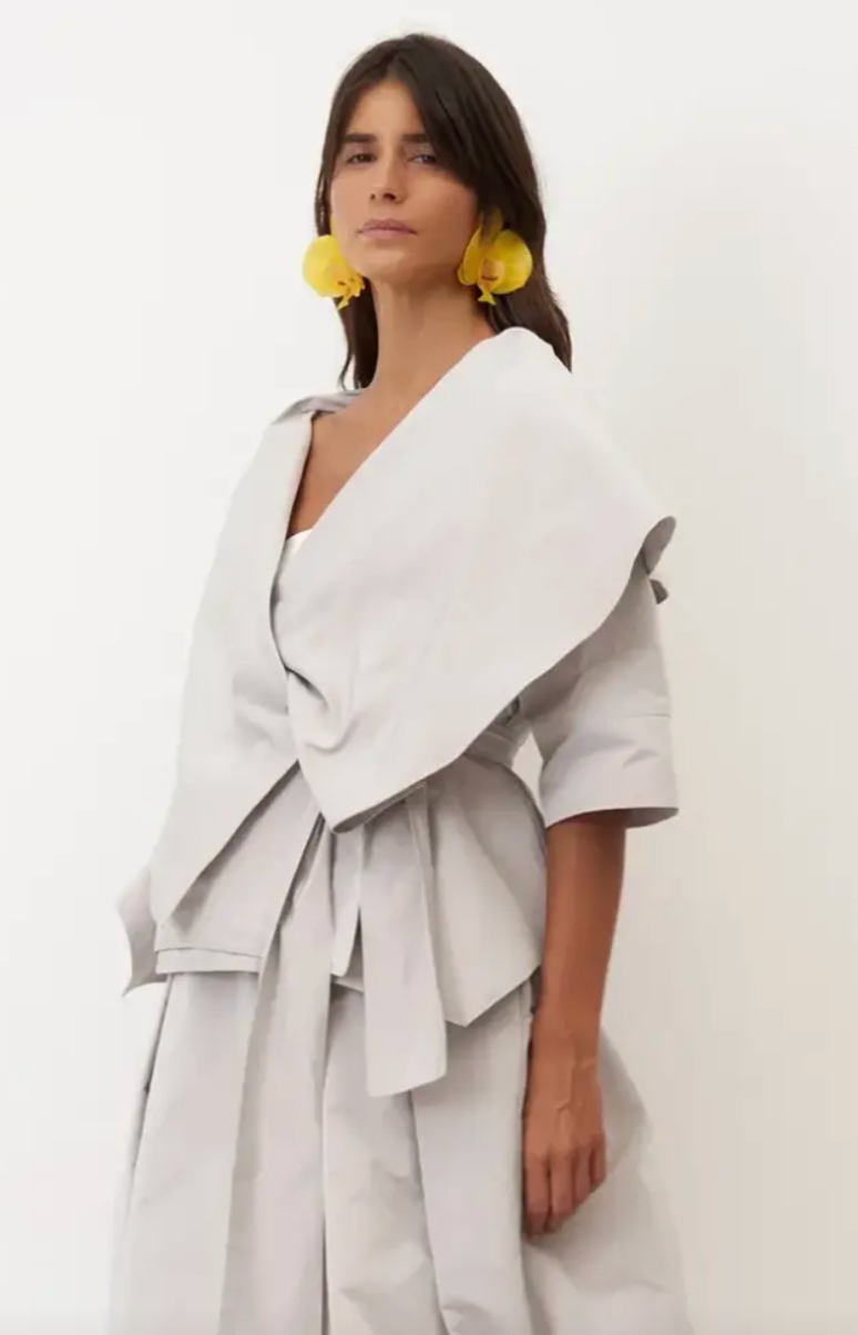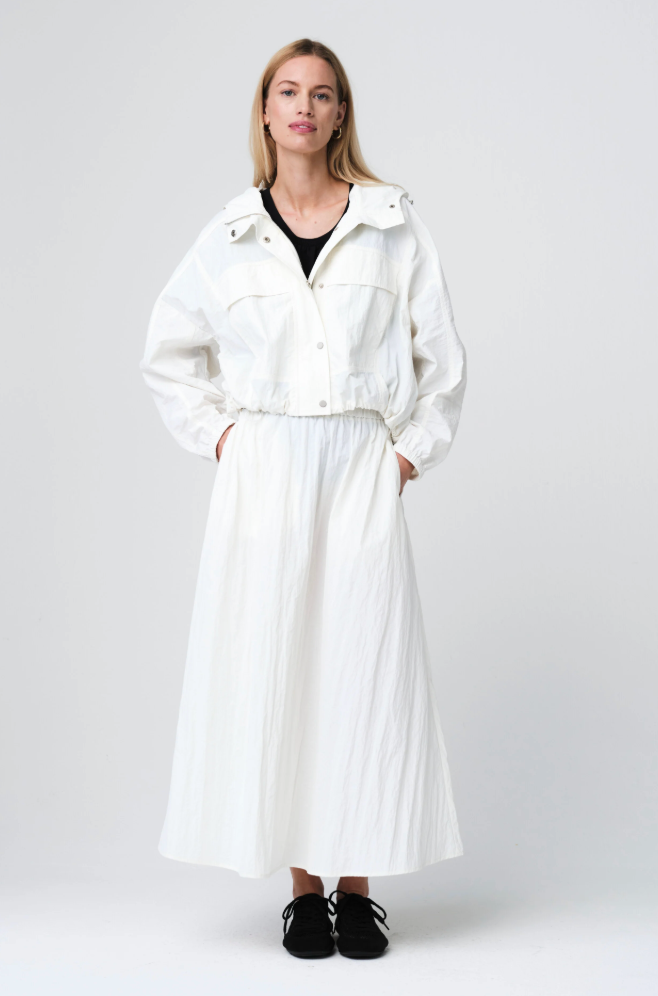 Regular price €149.95 Save 0%Jane Lushka Off White Cropped Lightweight Taffeta Drawstring Hem Jacket.