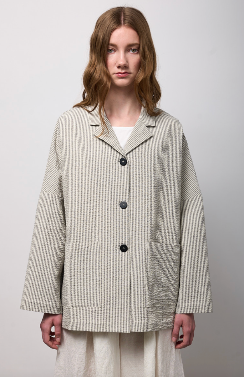 Regular price €215.00 Save 0%Neirami Shell/Black Stripe Cotton Blend Flared Over Jacket.