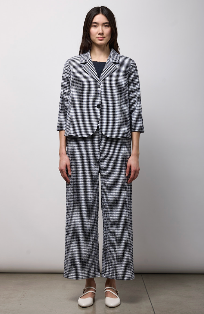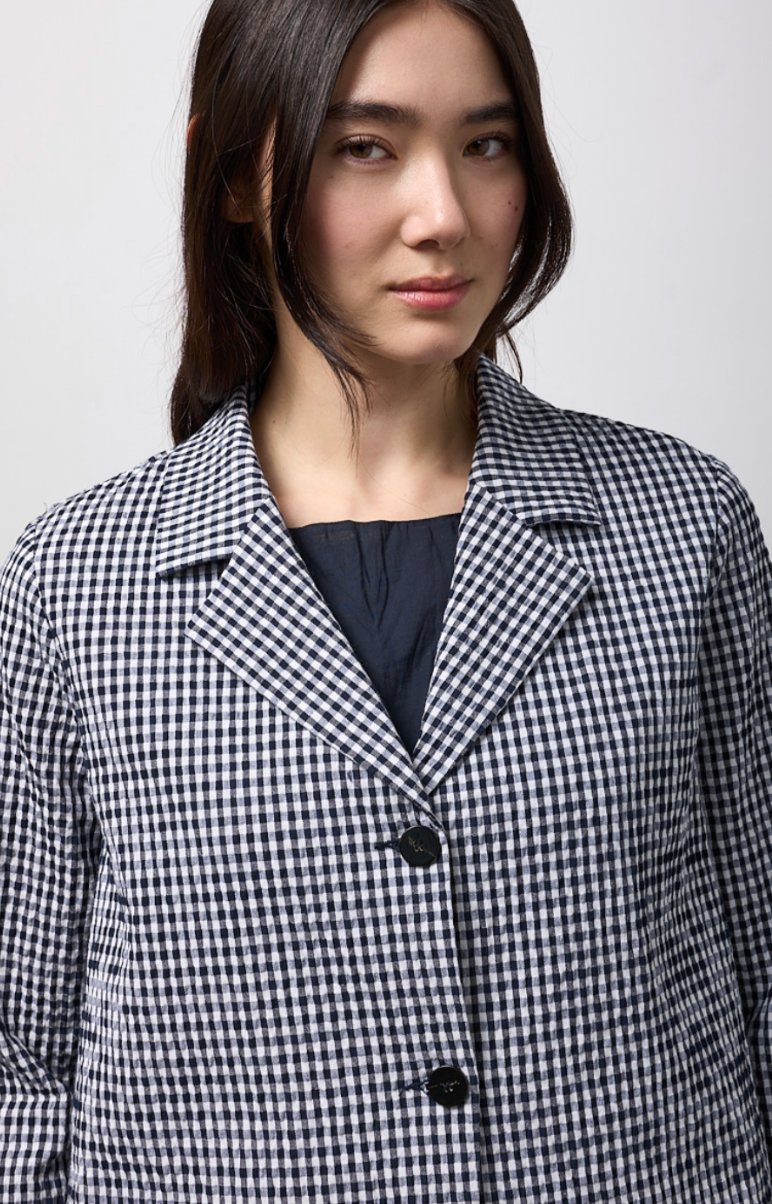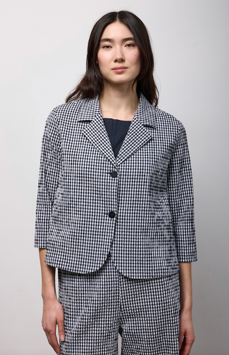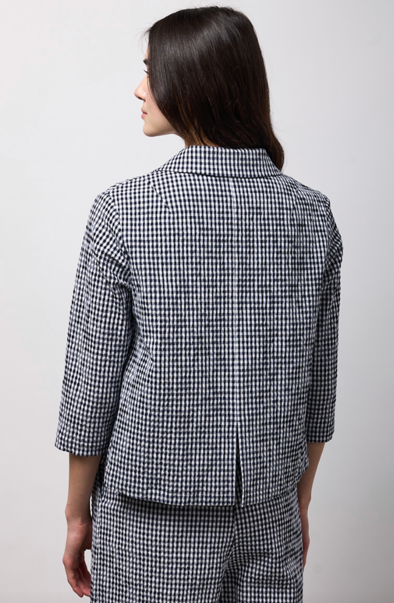 Regular price €250.00 Save 0%Neirami Navy/White Check Cropped Cotton Blend Seersucker Jacket.