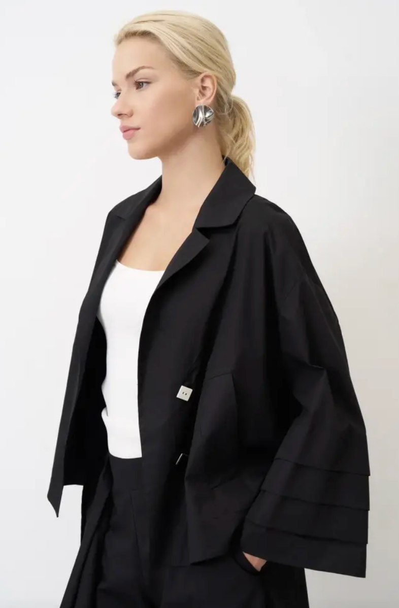 Regular price €310.00 Save 0%Meimeij Oyster Viscose Batwing Zip Up Puff Hem Jacket.