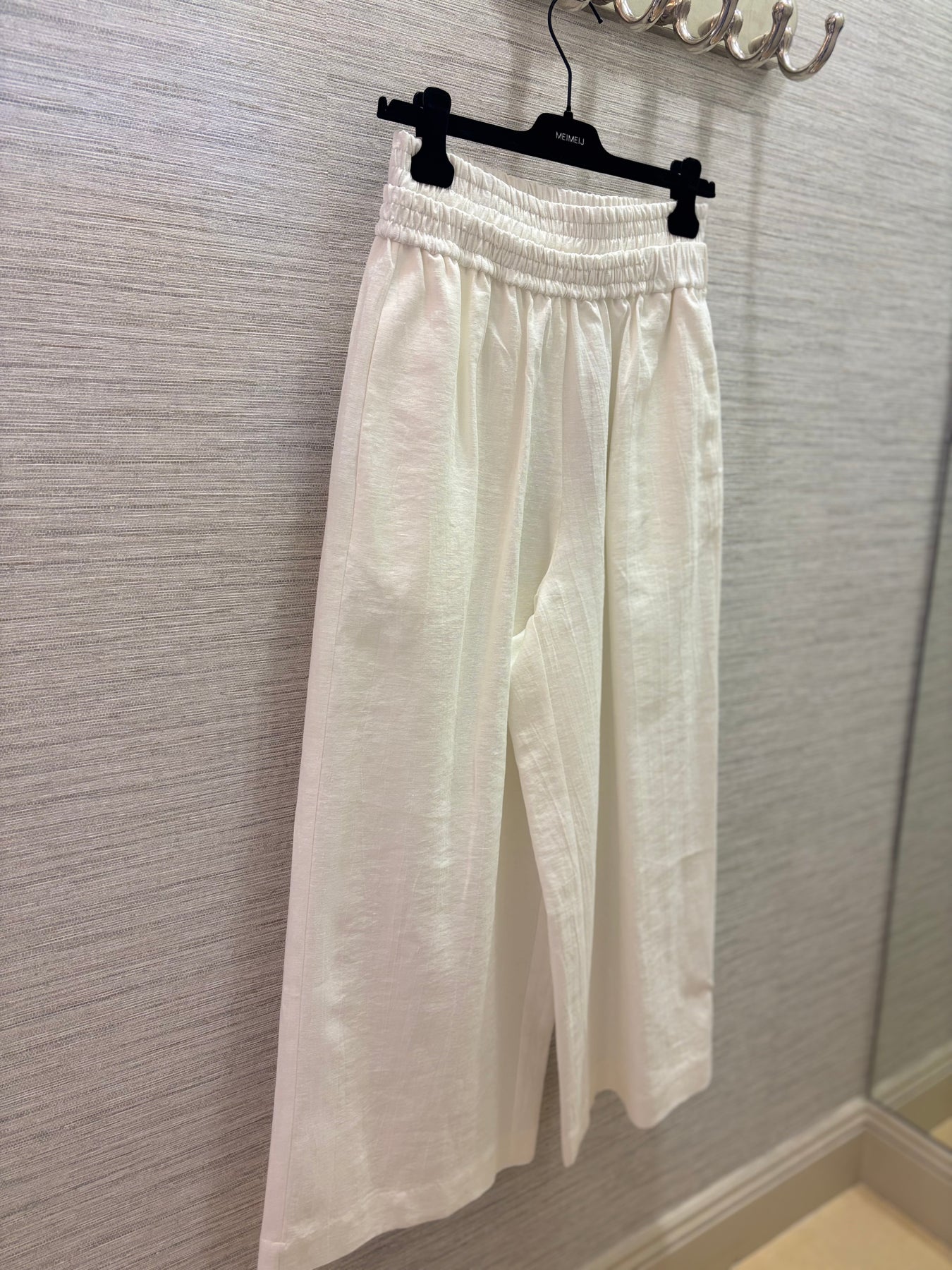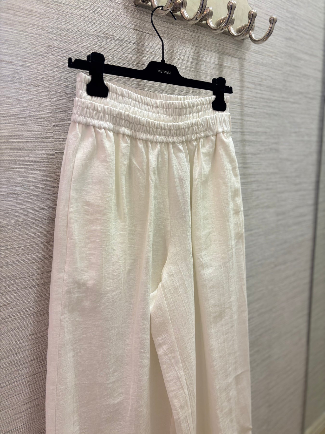 Regular price €220.00 Save 0%Meimeij Off White Linen/Cotton Blend Wide Leg Pant With Double Layered Gathered Waist.