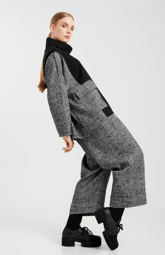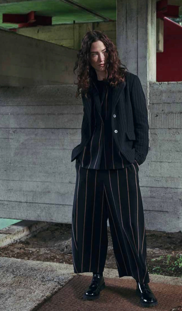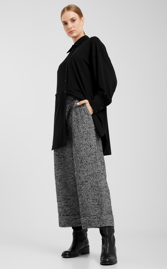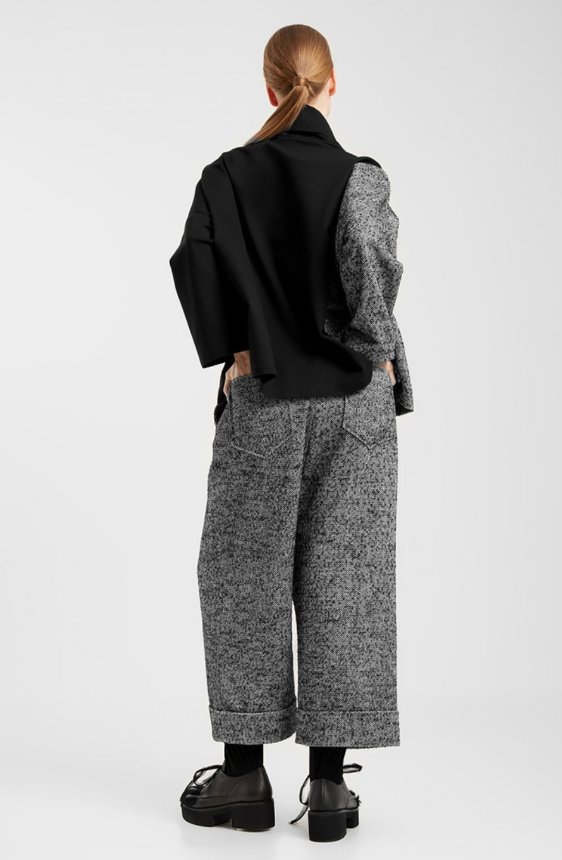 Regular price €170.00 Save 0%Elsewhere Black Herringbone 7/8 Length Wide Leg Relaxed Fit Drop Crotch Pant.