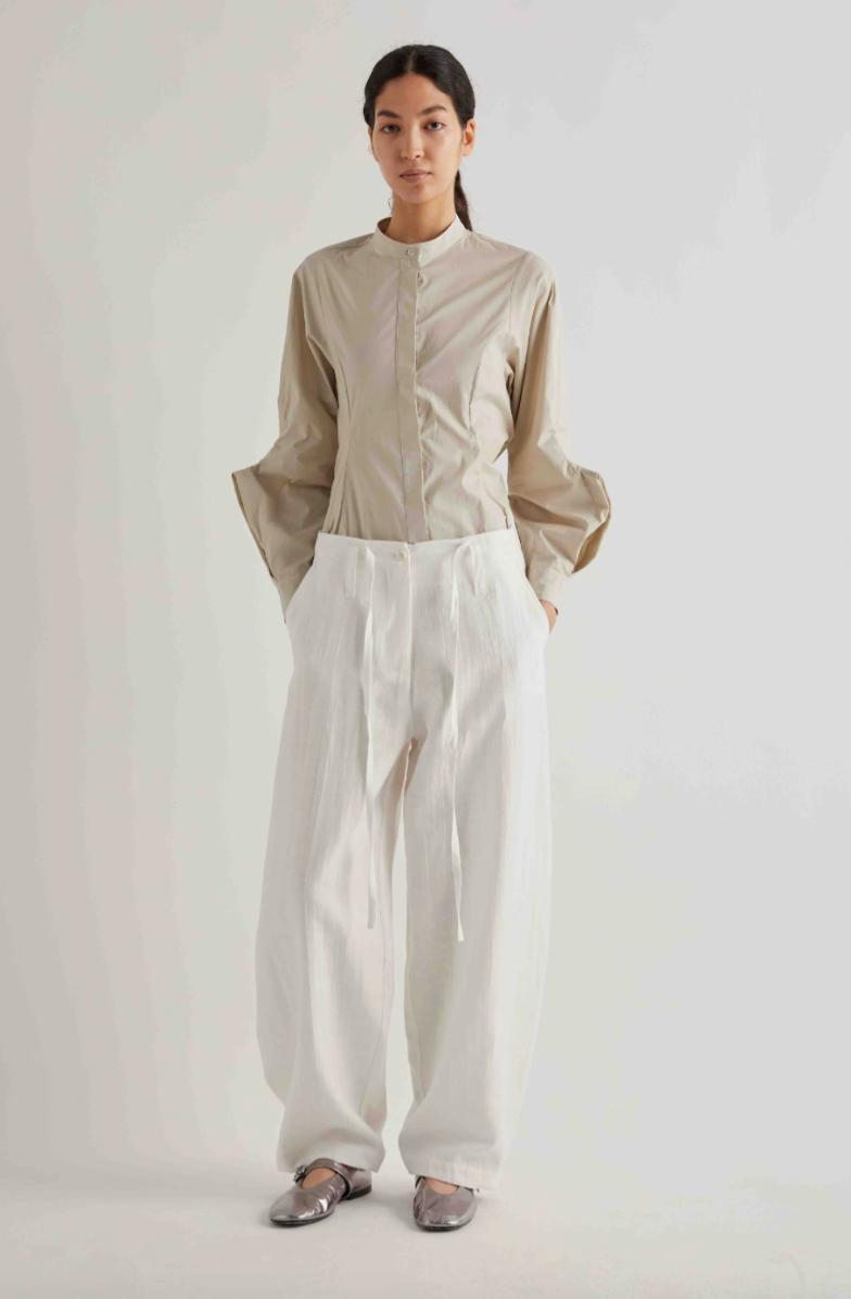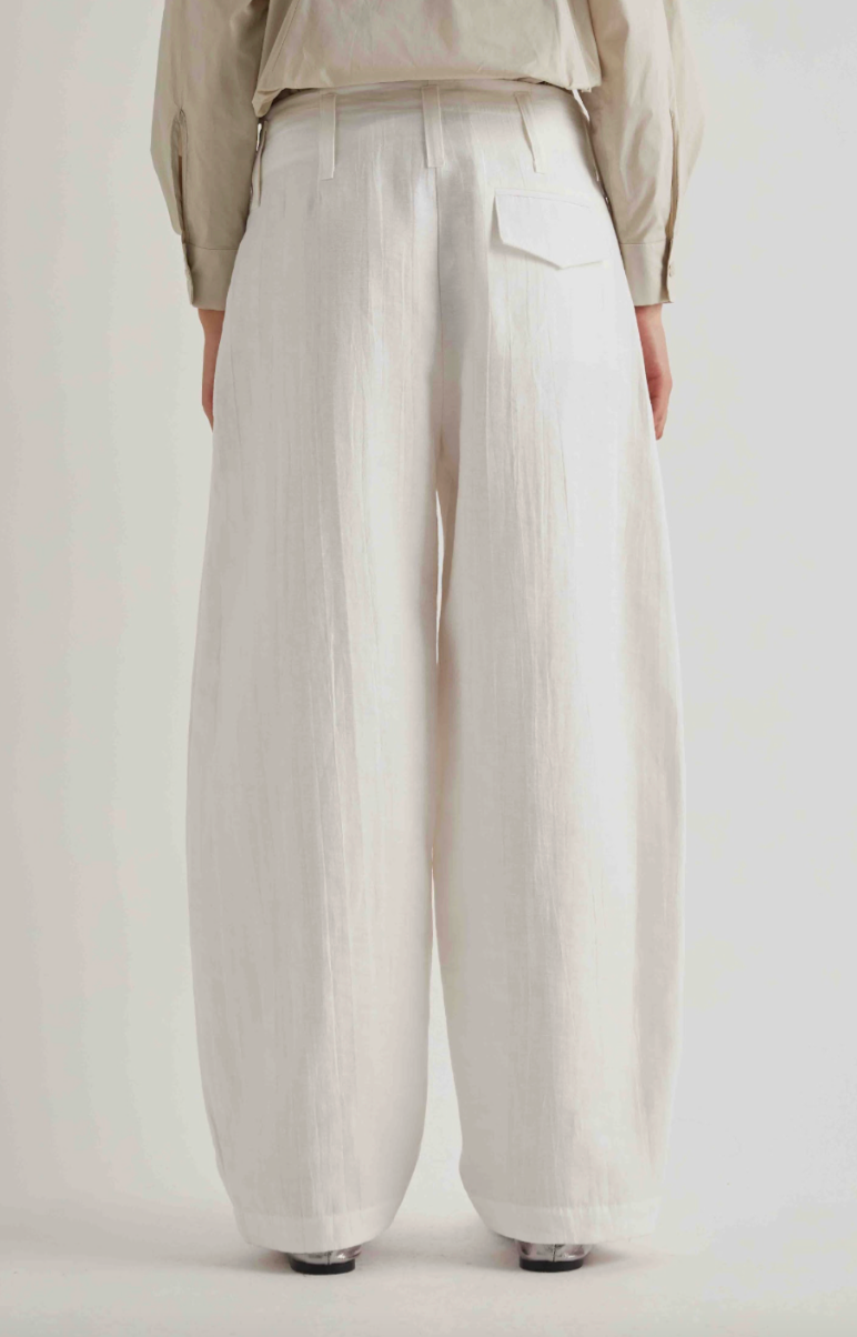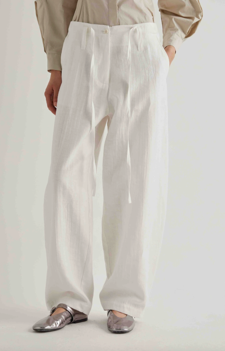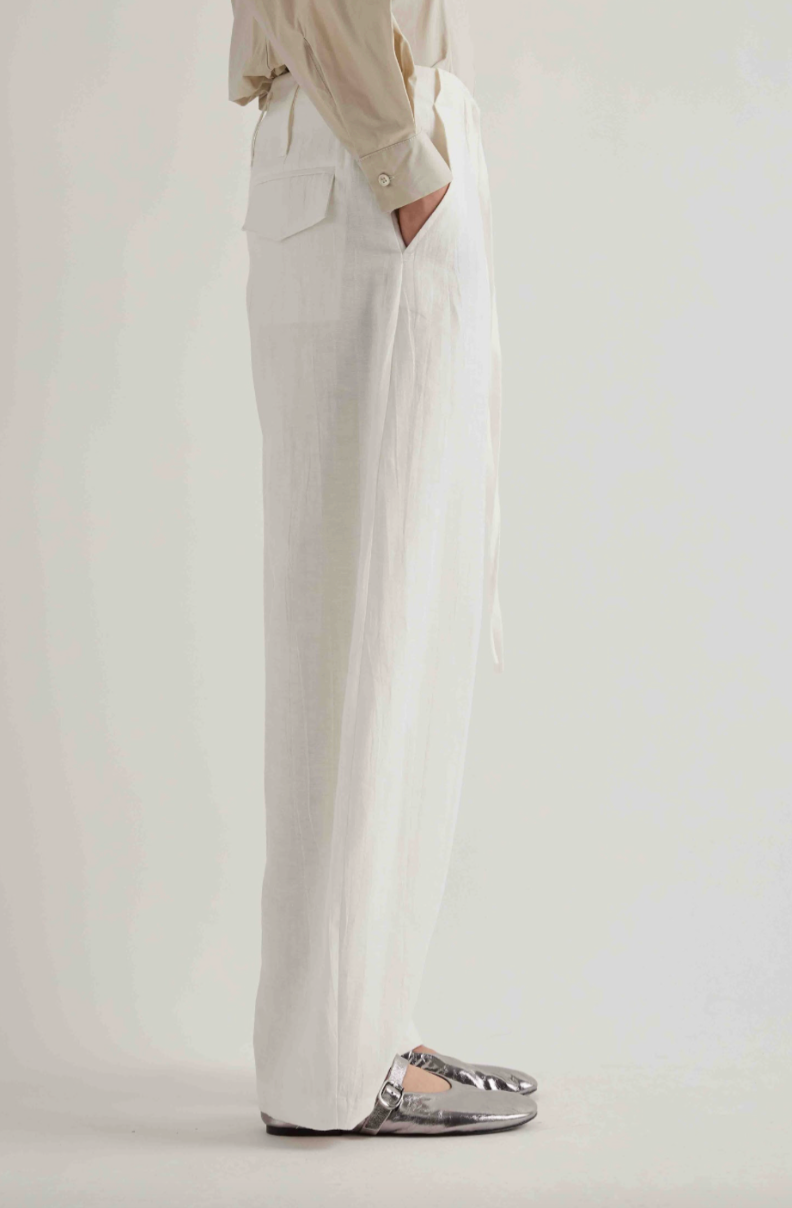 Regular price €220.00 Save 0%Meimeij Off White Linen/Cotton Blend Wide Leg Pant With Double Layered Gathered Waist.