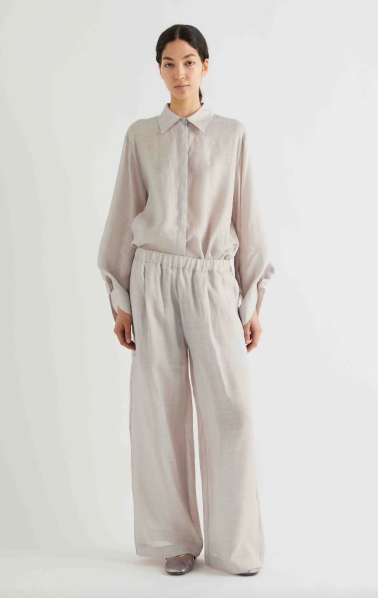 Regular price €225.00 Save 0%Meimeij Grey/Taupe Fine Cotton Wide Leg Pit With Elasticated Waist.