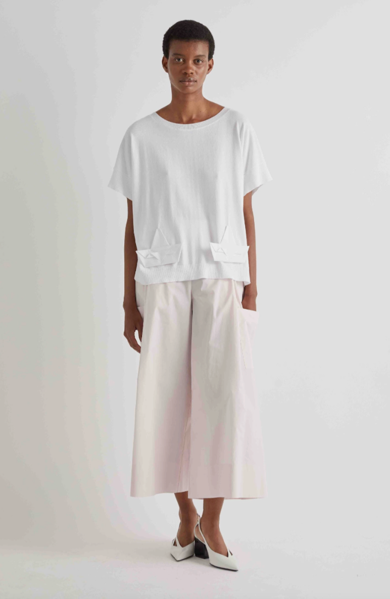 Regular price €210.00 Save 0%Psophia White Cotton Wide Leg 3/4 Length Pant.