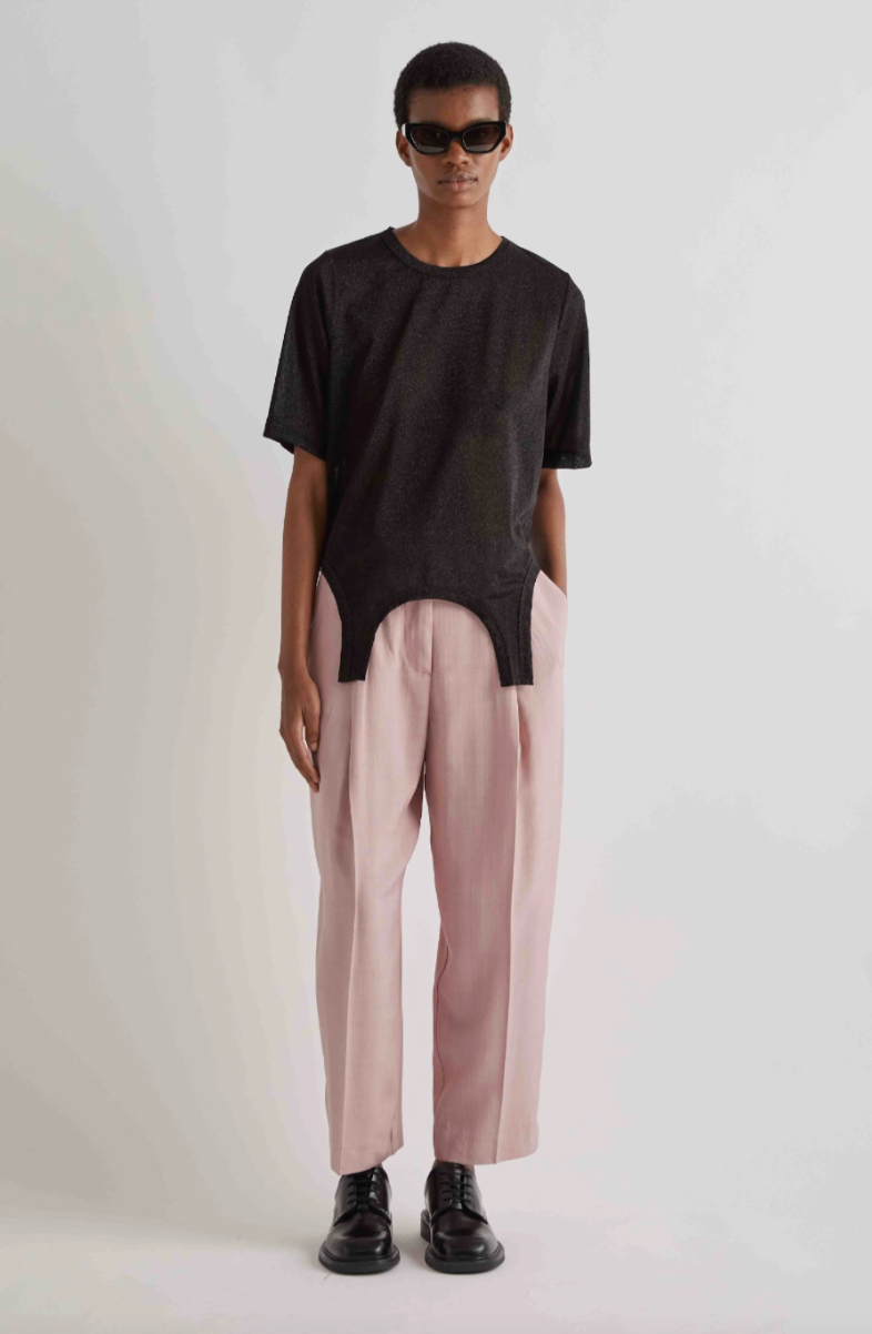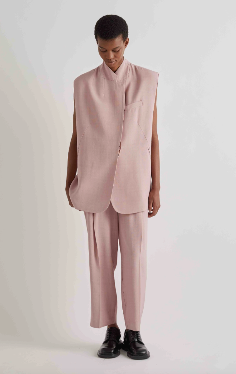 Regular price €285.00 Save 0%Meimeij Rose Dust Tapered End Pant With Pleated Front.