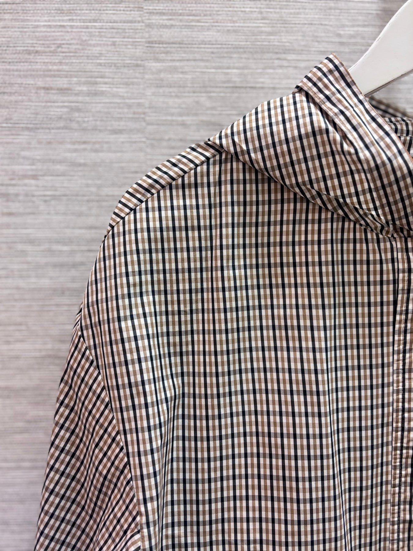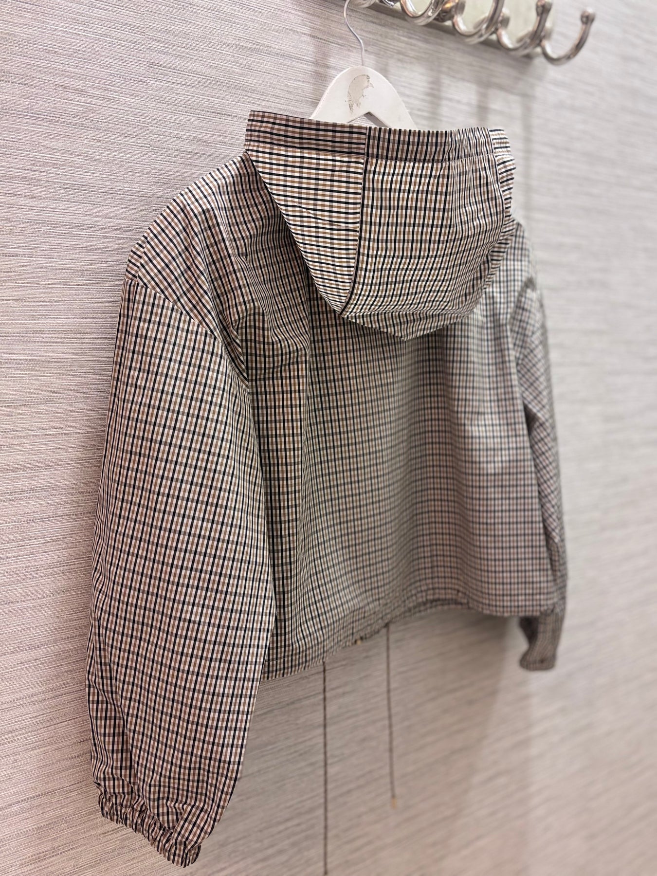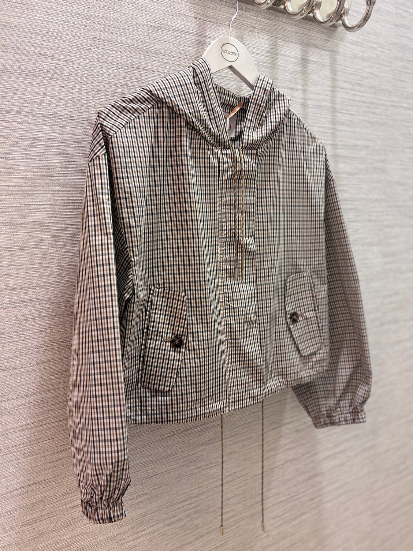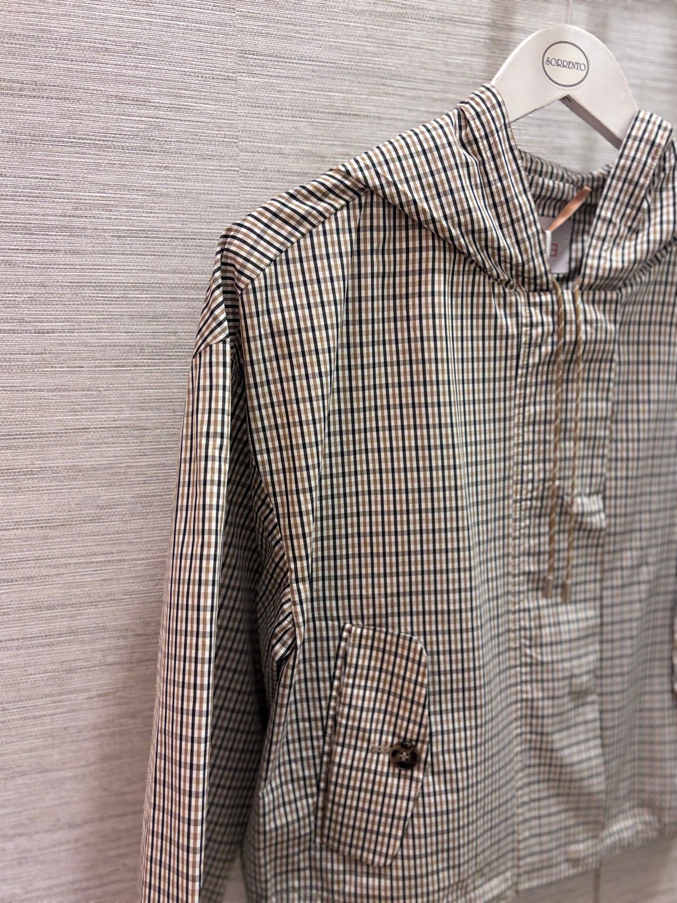 Regular price €220.00 Save 0%Emme Wool White Plaid Check Hooded Zip Up Lightweight Jacket With Drawstring Waist.