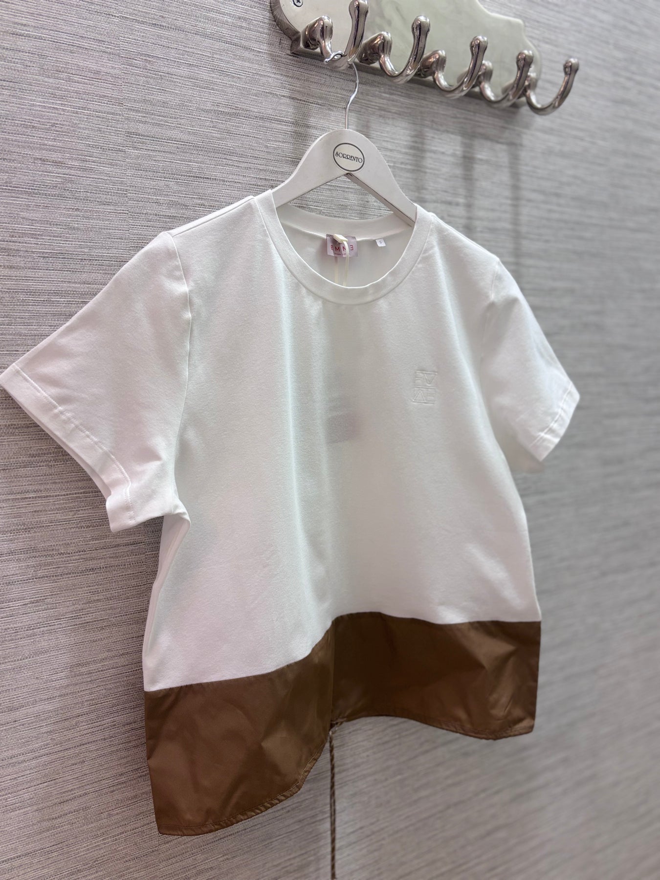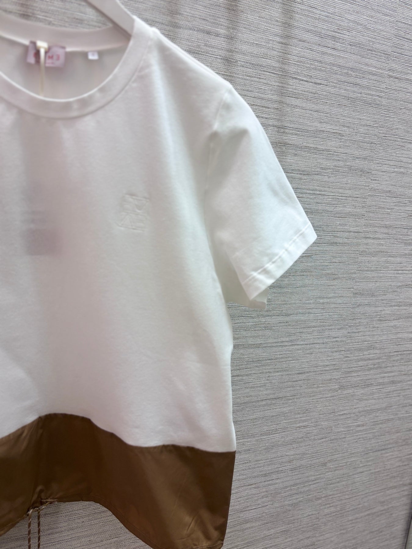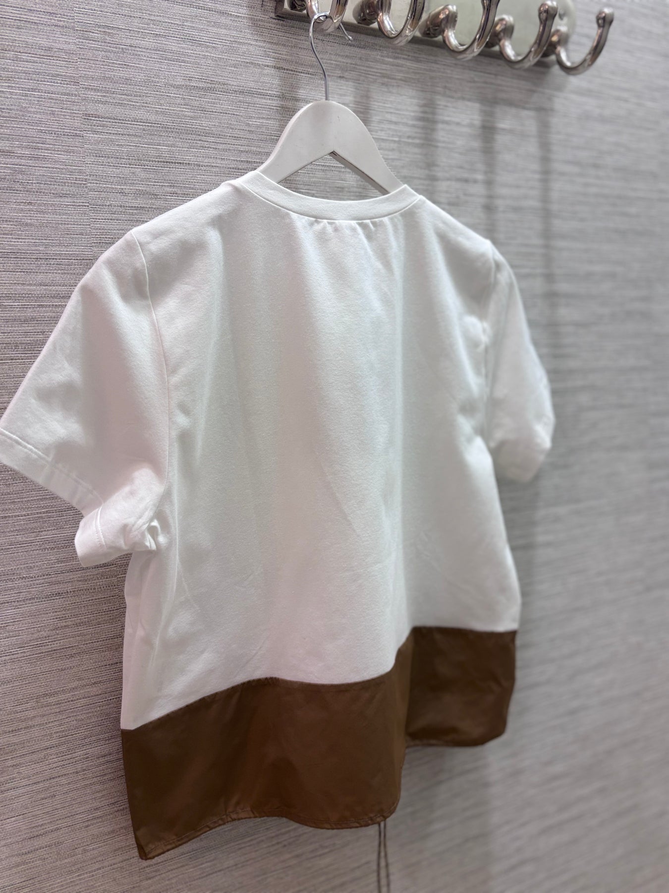 Regular price €95.00 Save 0%Emme White Cotton Drawstring Waist T-Shirt With Contrasting Camel Fabric.