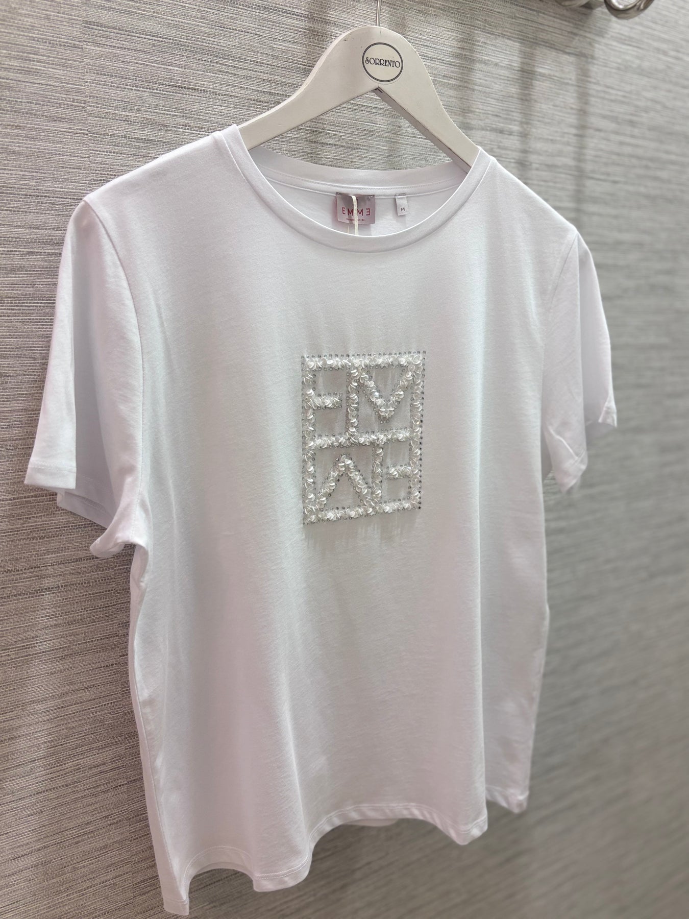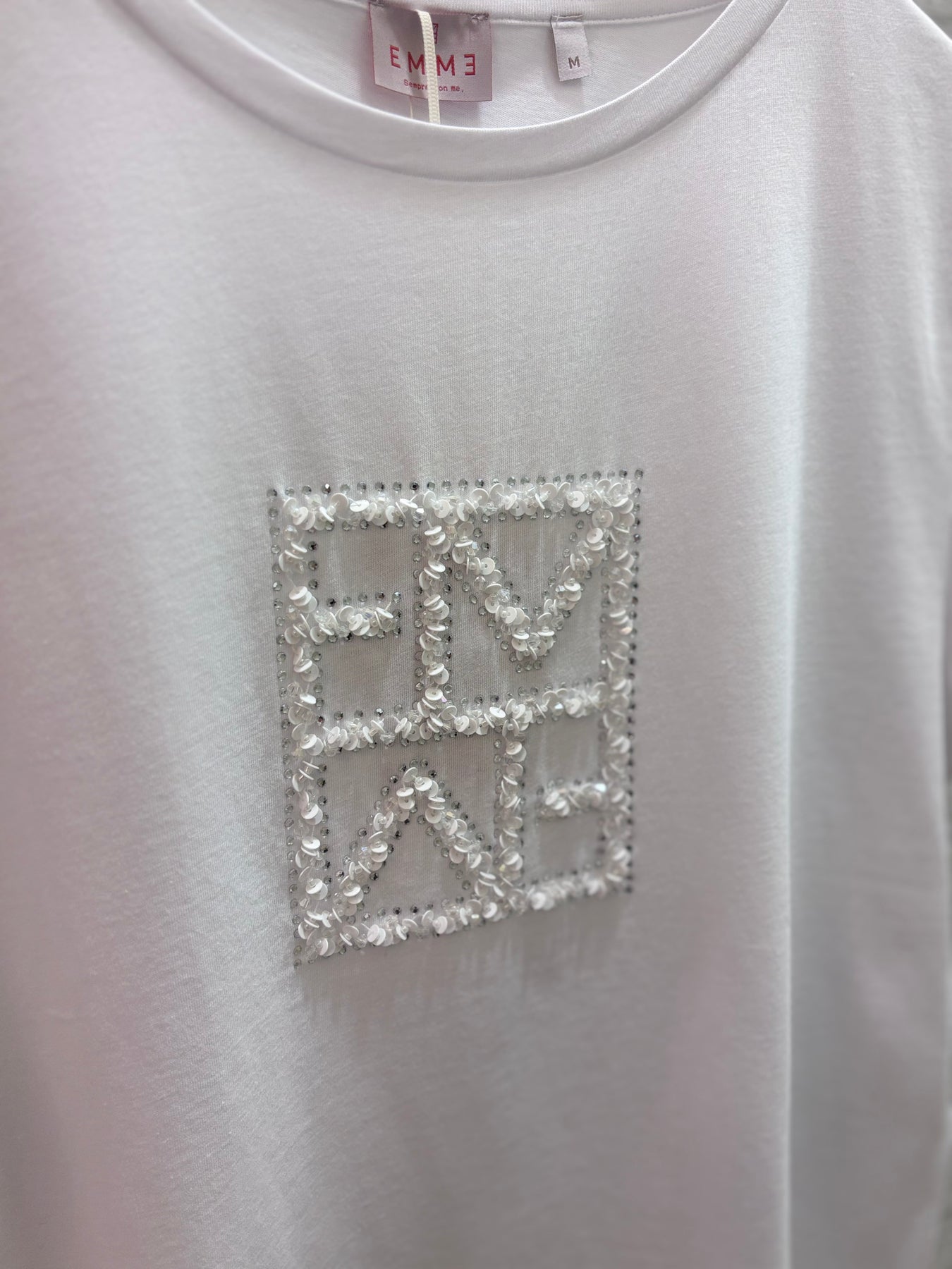 Regular price €85.00 Save 0%Emme White Logo Cotton T-Shirt With Sequin Logo Design.