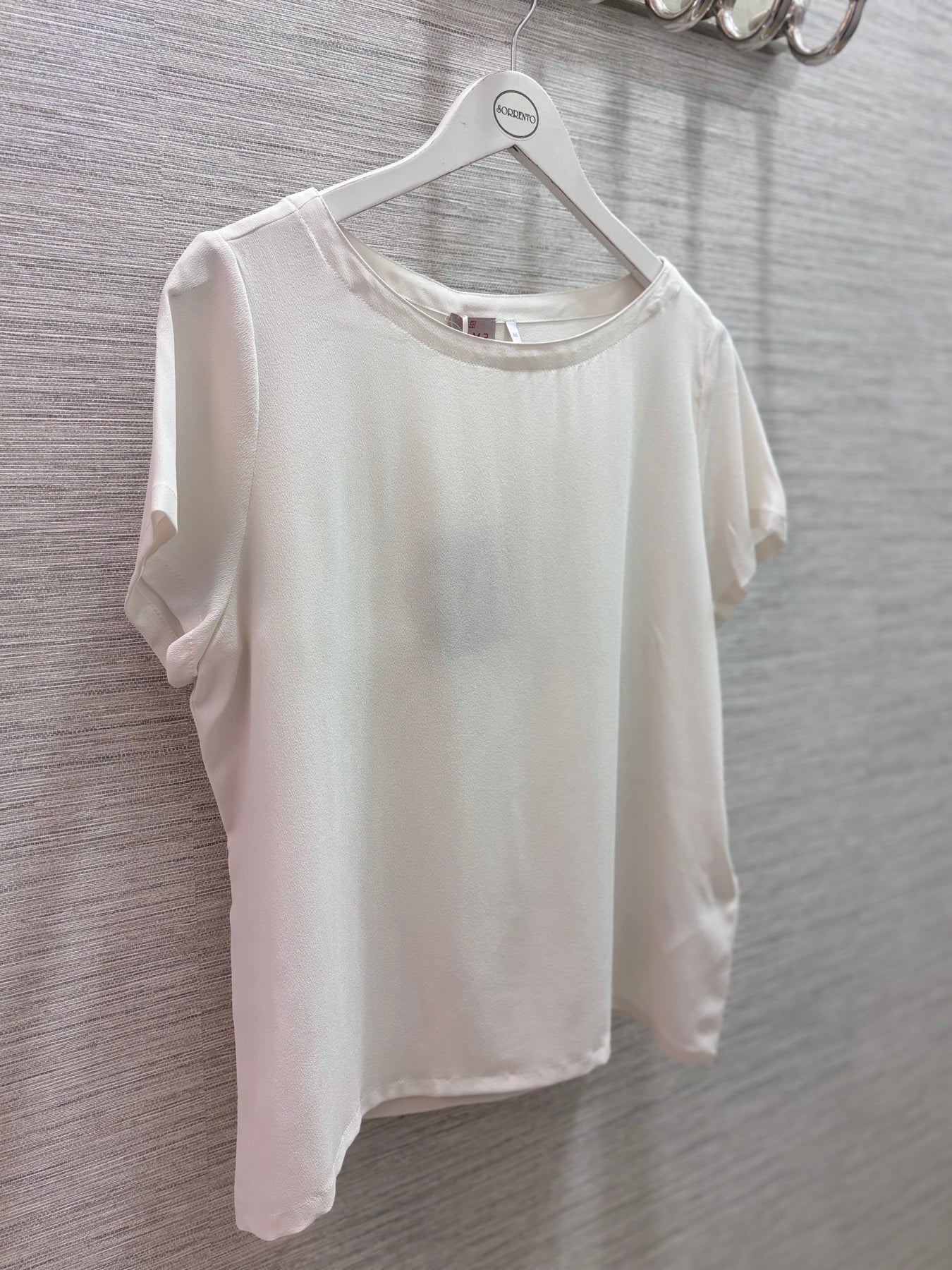 Regular price €95.00 Save 0%Emme Wool White Silk Blend Short Sleeve Top.