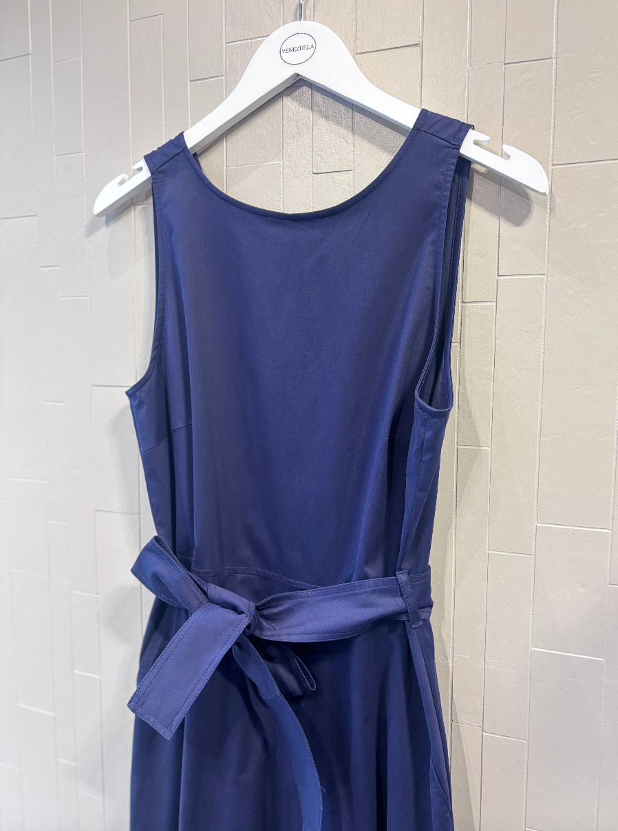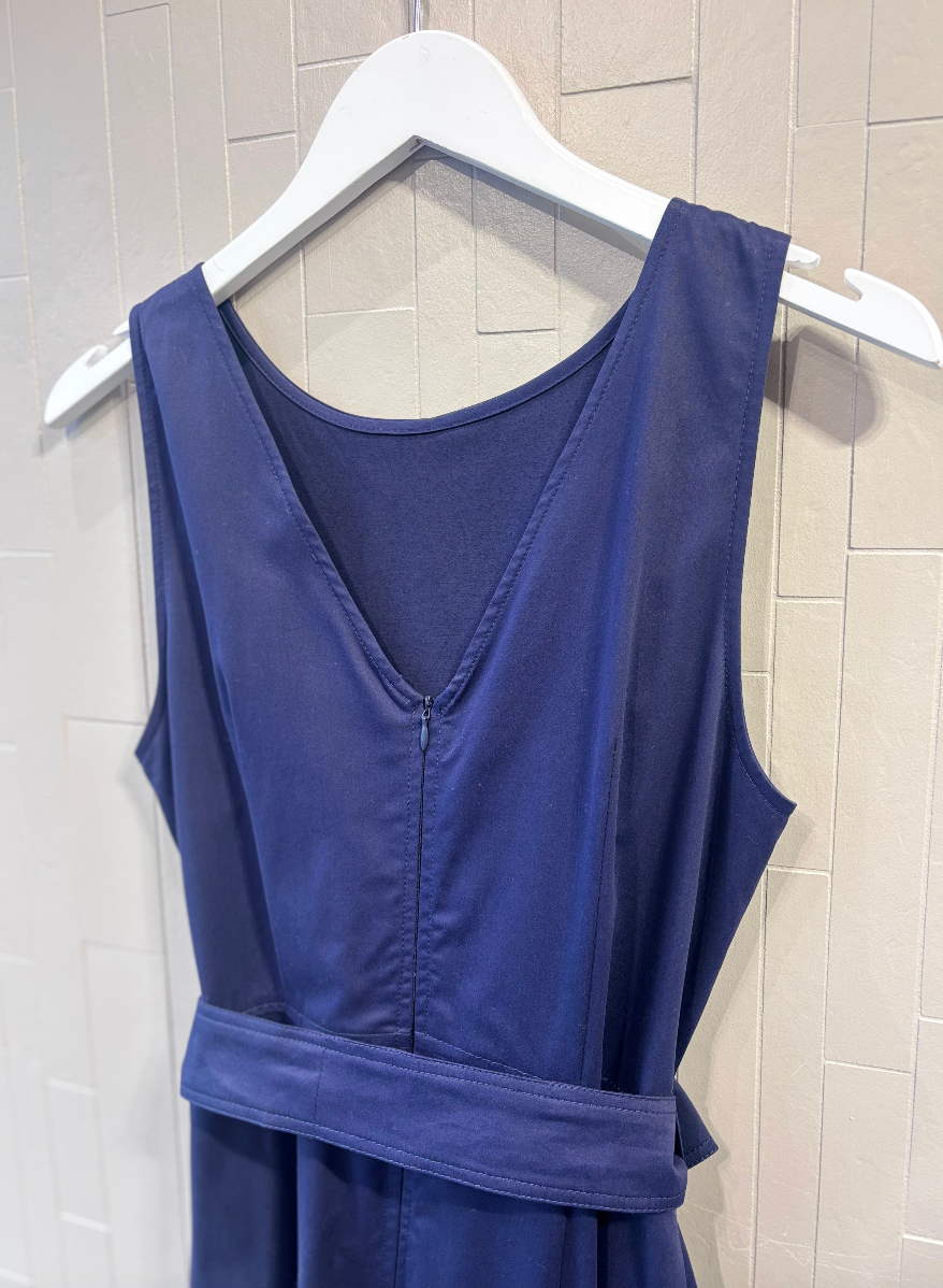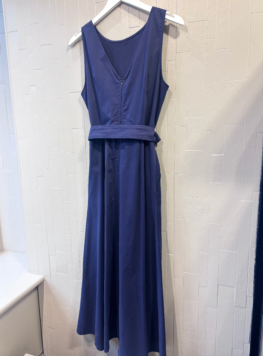 Regular price €230.00 Save 0%Emme Navy Cotton Sleeveless Long V-Back Dress With Belt.