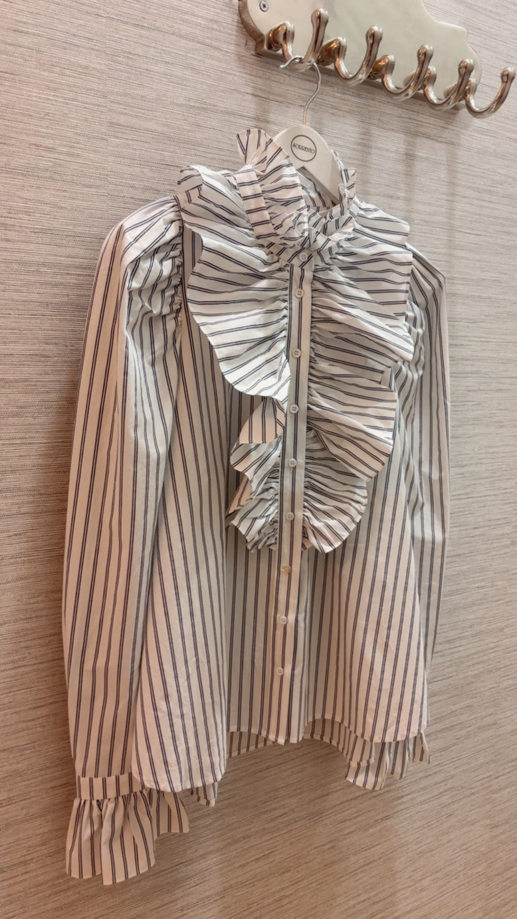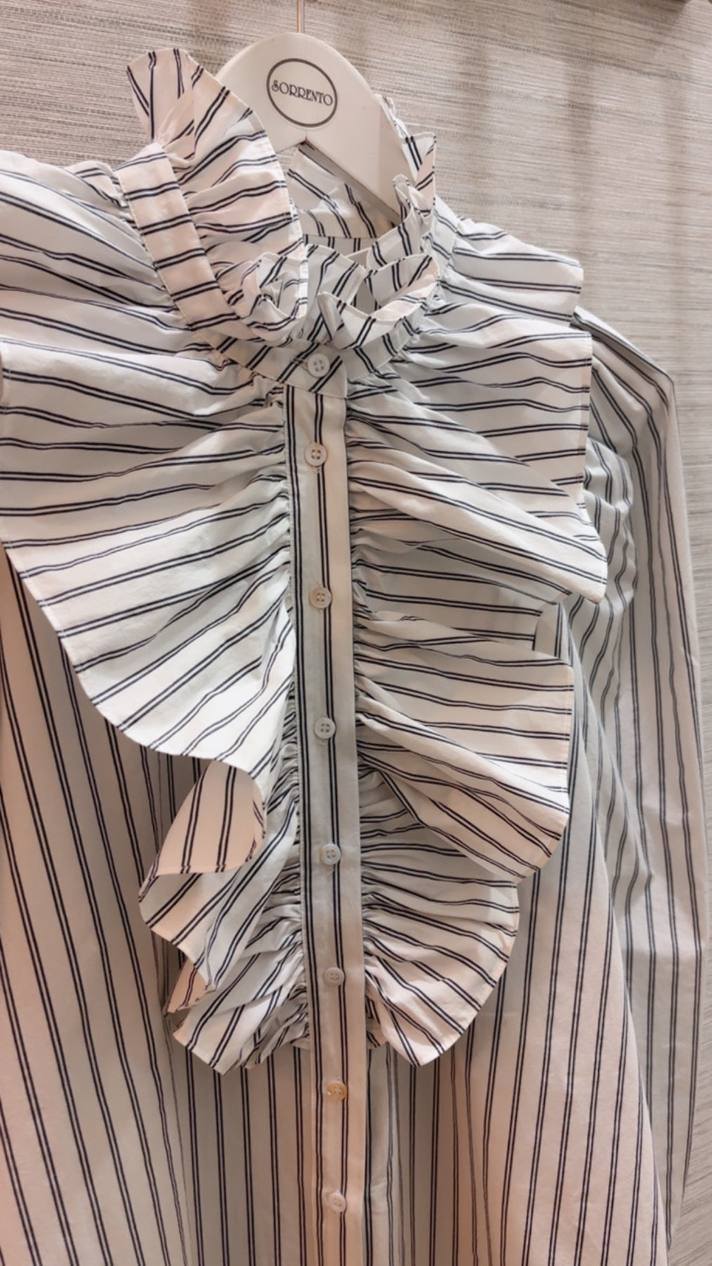 Regular price €215.00 Save 0%Psophia Striped Cotton Ruffle Shirt.