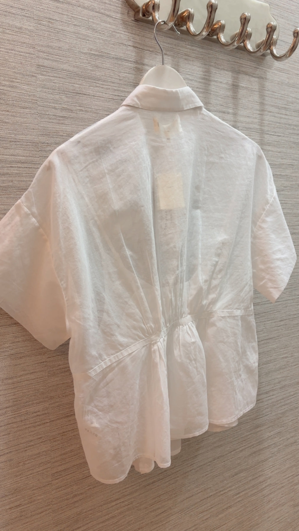 Regular price €265.00 Save 0%Meimeij Navy Fine Cotton Puff Gathered Elasticated Hem Crop Shirt.