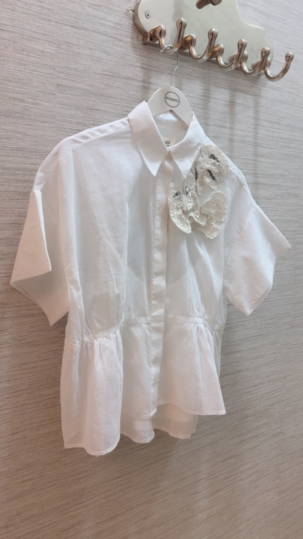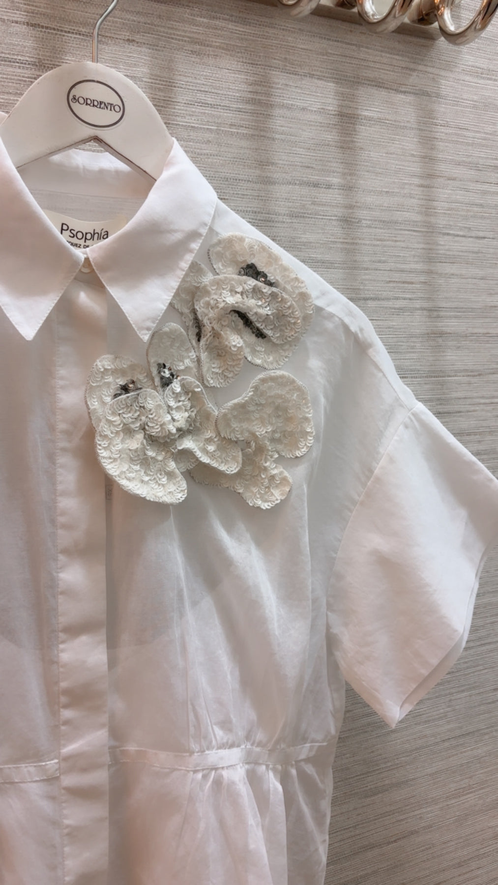 Regular price €270.00 Save 0%Psophia White Cotton Embroidered Short Sleeve Shirt.