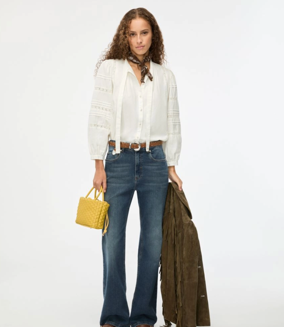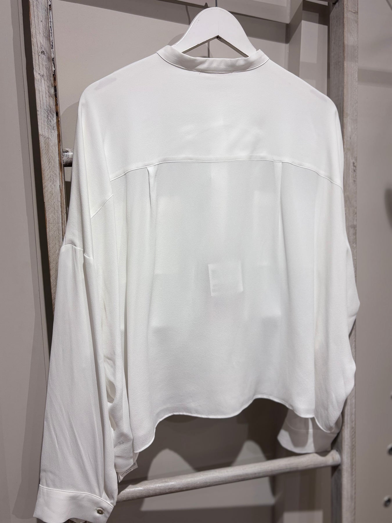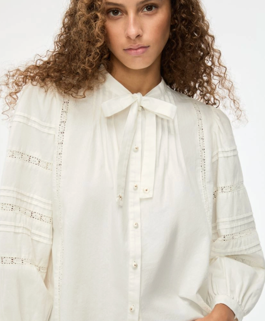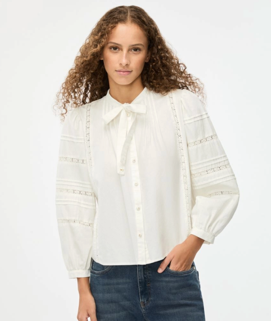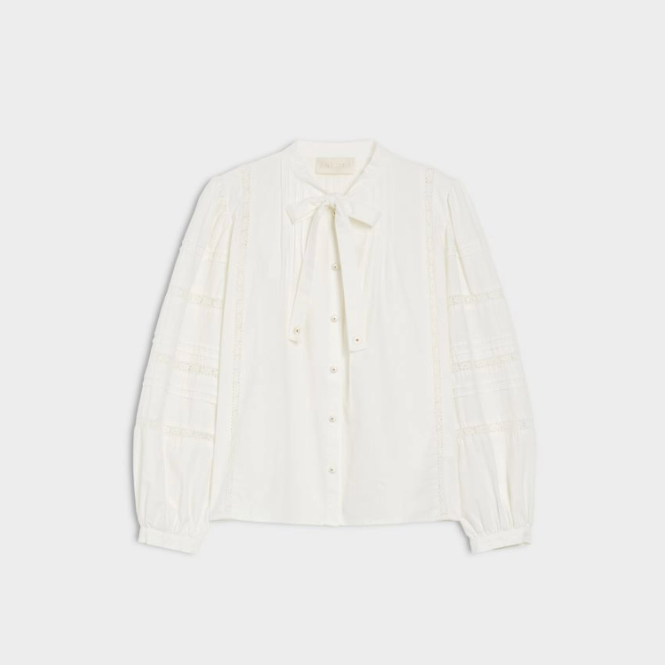 Regular price €150.00 Save 0%i Blues Winter White Cotton Balloon Sleeve Shirt With Lace Trim Detail.