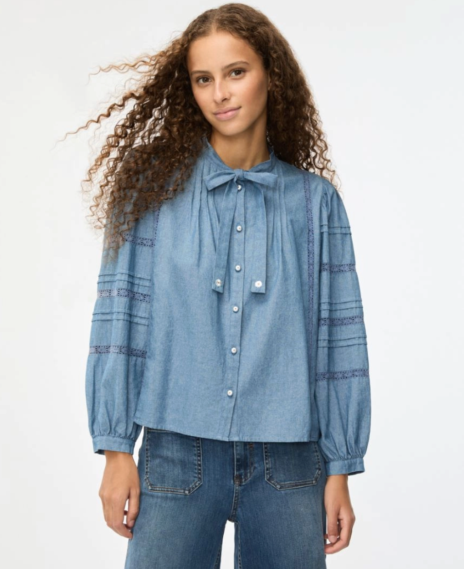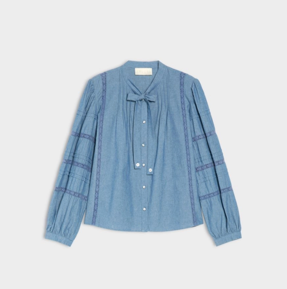 Regular price €150.00 Save 0%i Blues Denim Blue Cotton Lace Balloon Sleeve Shirt With Lace Trim Detail.