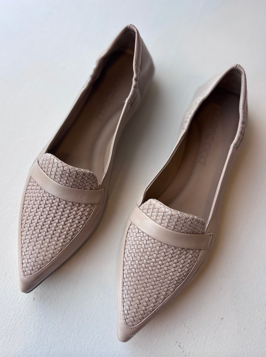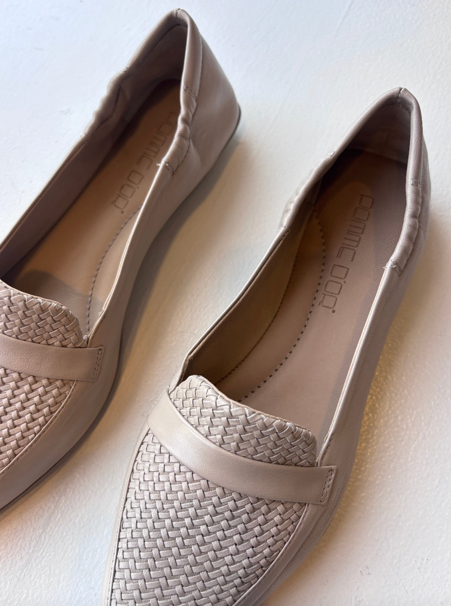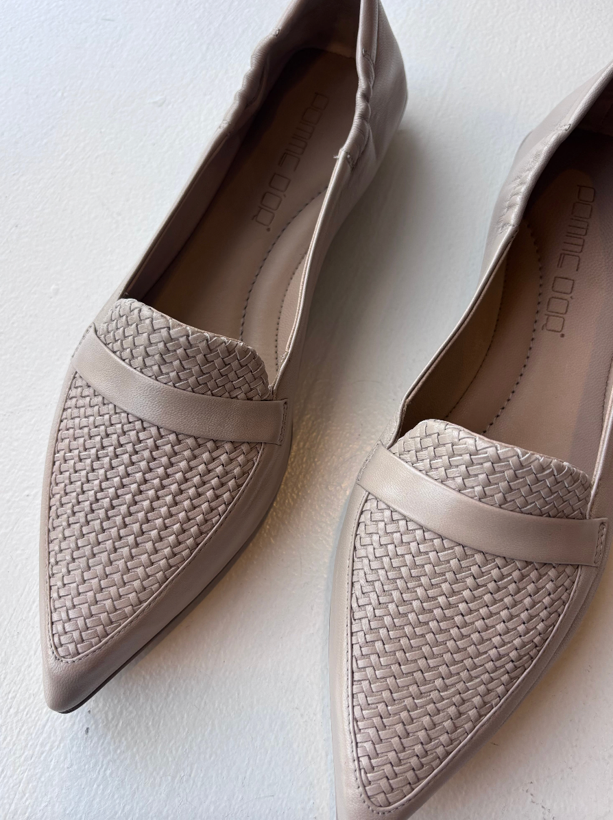 Regular price €360.00 Save 0%Pomme d'Or Sand Glove Soft Leather Pointed Slip On Loafer With Woven Design.