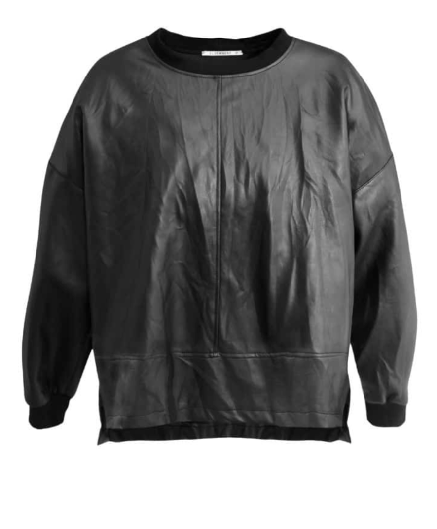 Regular price €145.00 Save 0%Elsewhere Black Vegan Leather Top Stitched Top With Ribbed Cuff.
