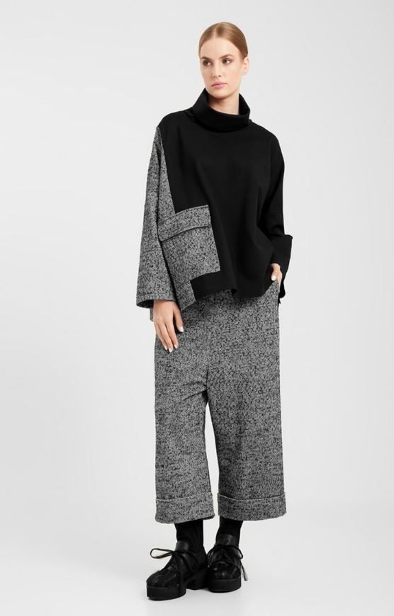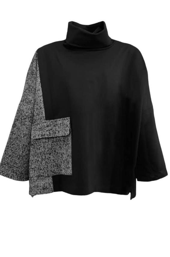 Regular price €140.00 Save 0%Elsewhere Black Herringbone Loose Fit Sweater With Contrasting Fabric.