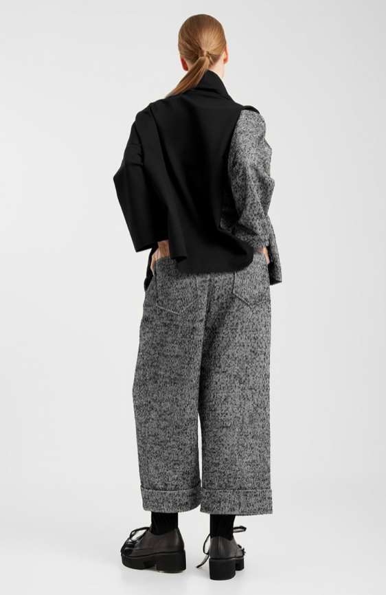 Regular price €170.00 Save 0%Elsewhere Black Herringbone 7/8 Length Wide Leg Relaxed Fit Drop Crotch Pant.