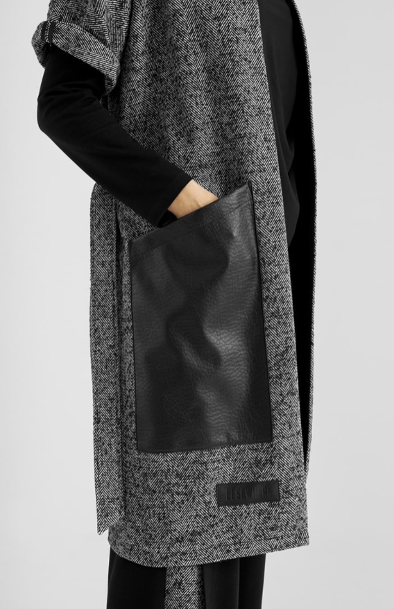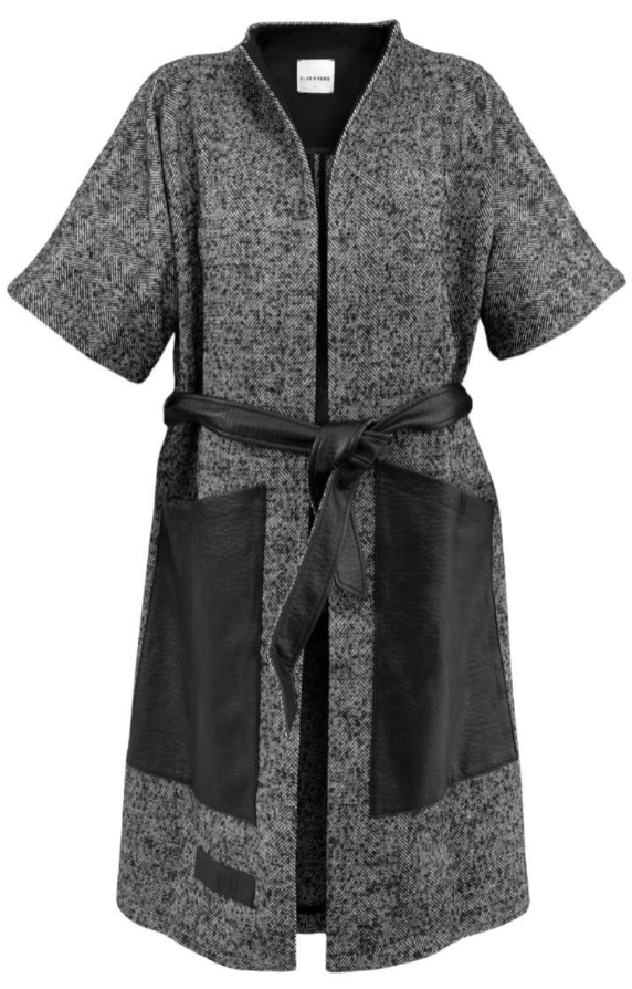 Regular price €210.00 Save 0%Elsewhere Black Herringbone Short Sleeve Belted Jacket With Oversized Vegan Leather Patch Pockets .