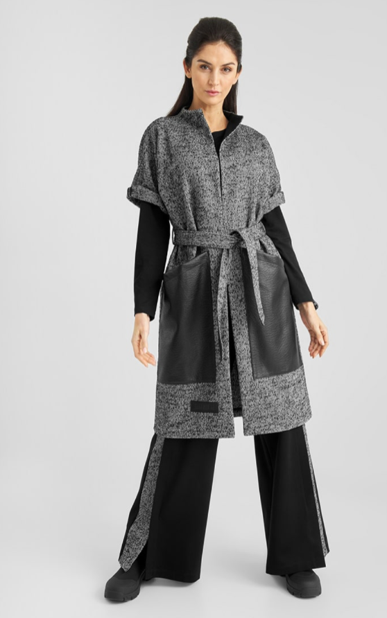 Regular price €199.00 Save 0%Elsewhere Black/Grey Wool Blend Half Sleeve High Neck Reversible Half Top.