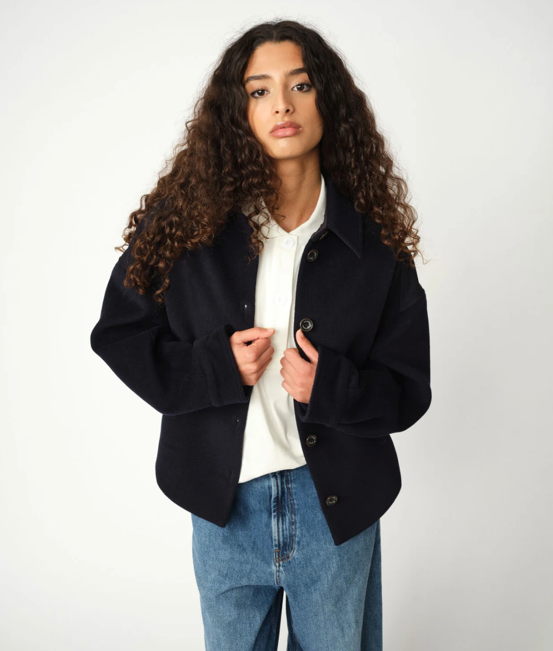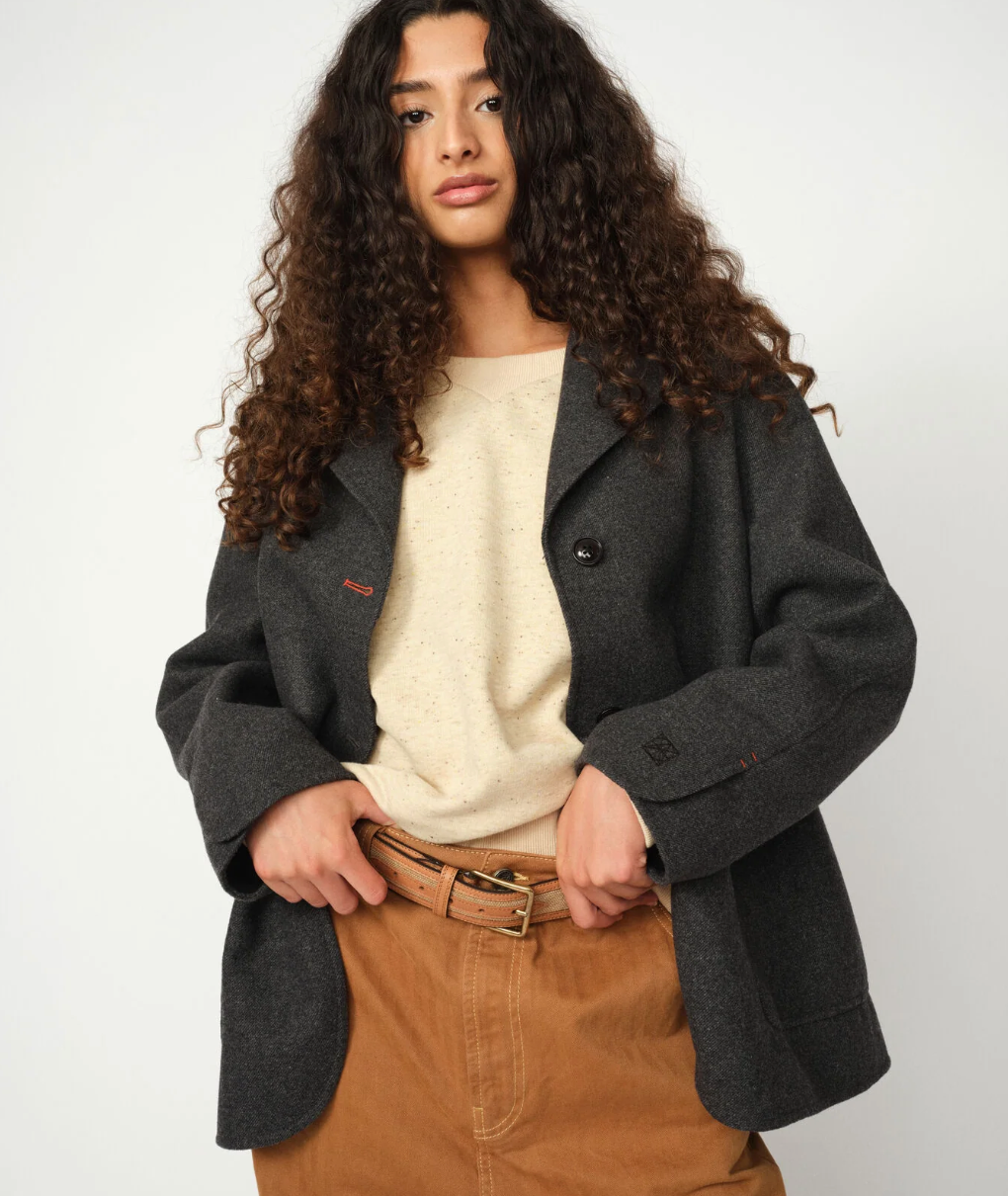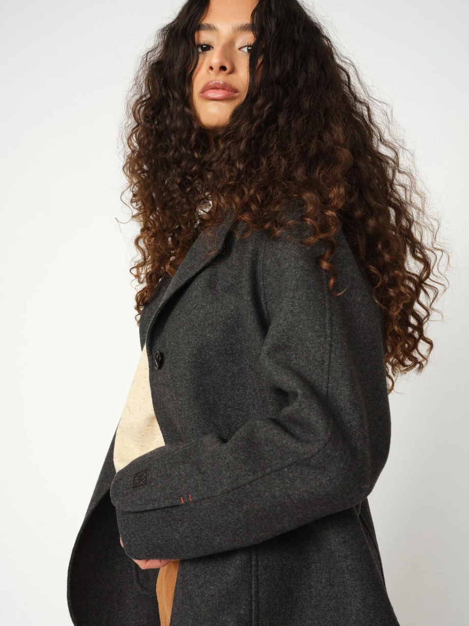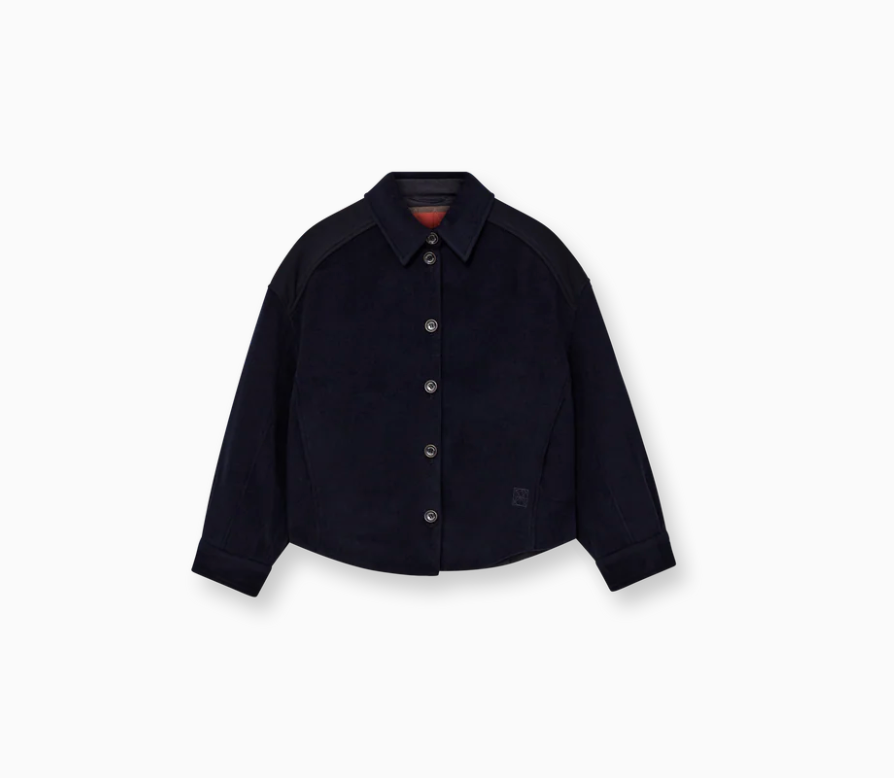 Regular price €299.00 Save 0%Heyanno Sky Captain Relaxed Fit Cashmere/Wool Blend Ribbed Shoulder Jacket With Curved Hem Design.