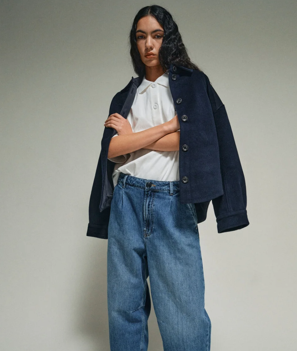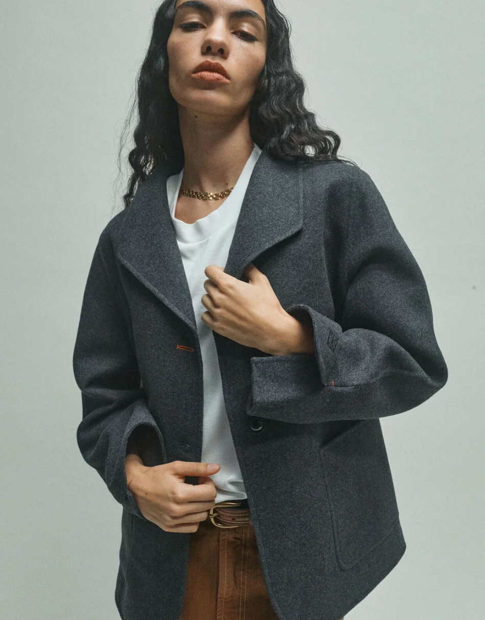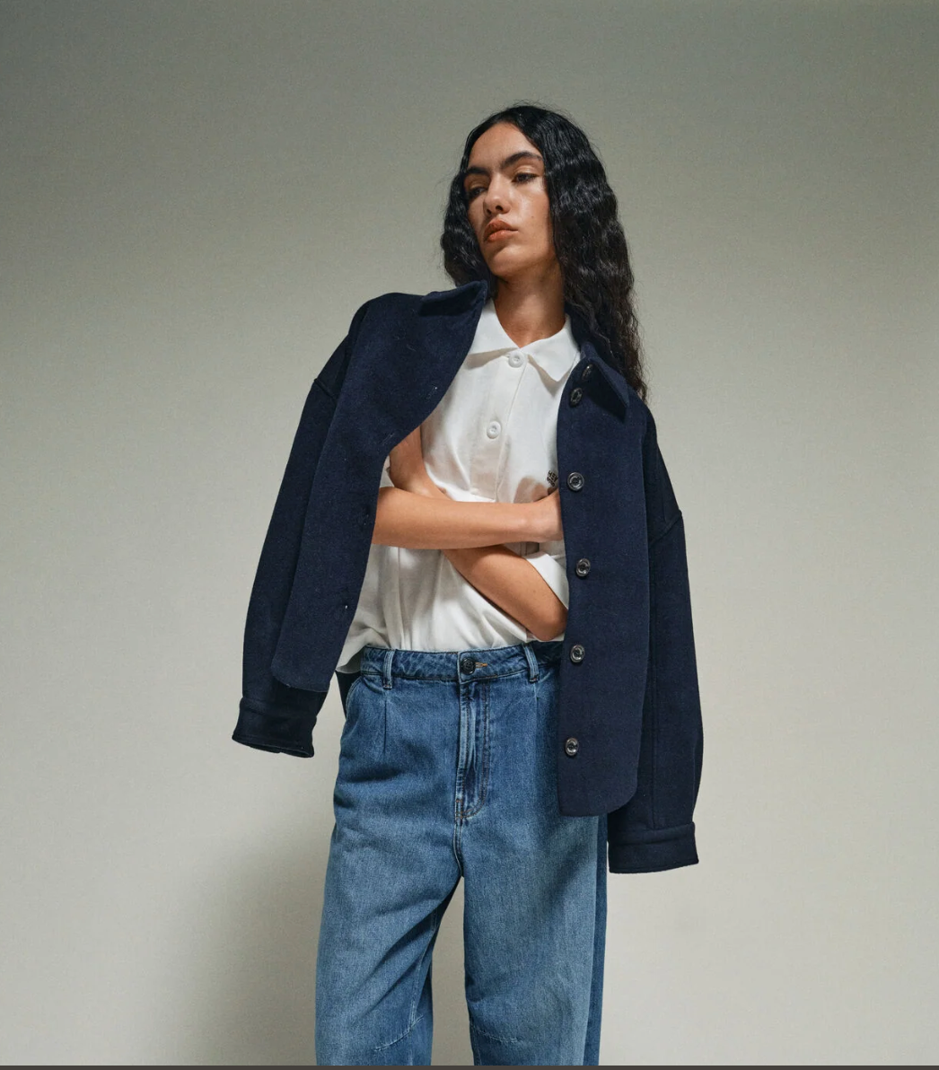Regular price €299.00 Save 0%Heyanno Sky Captain Relaxed Fit Cashmere/Wool Blend Ribbed Shoulder Jacket With Curved Hem Design.