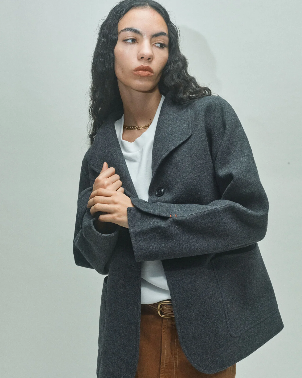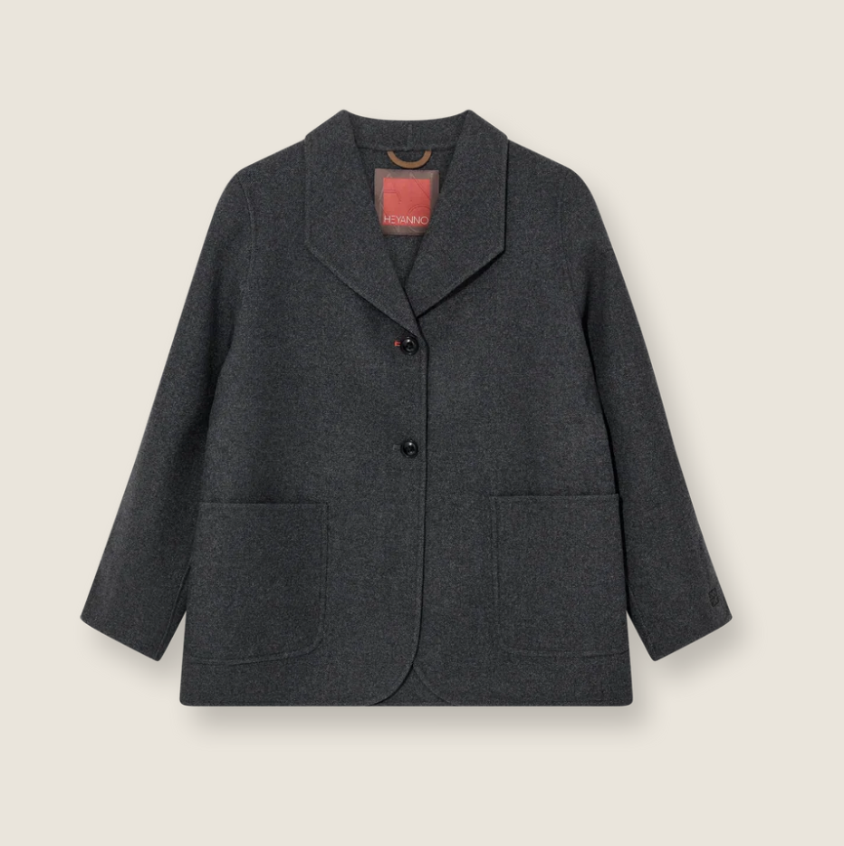 Regular price €229.00 Save 0%Heyanno Grey Wool Blend Jacket With Felted Seam Detail.