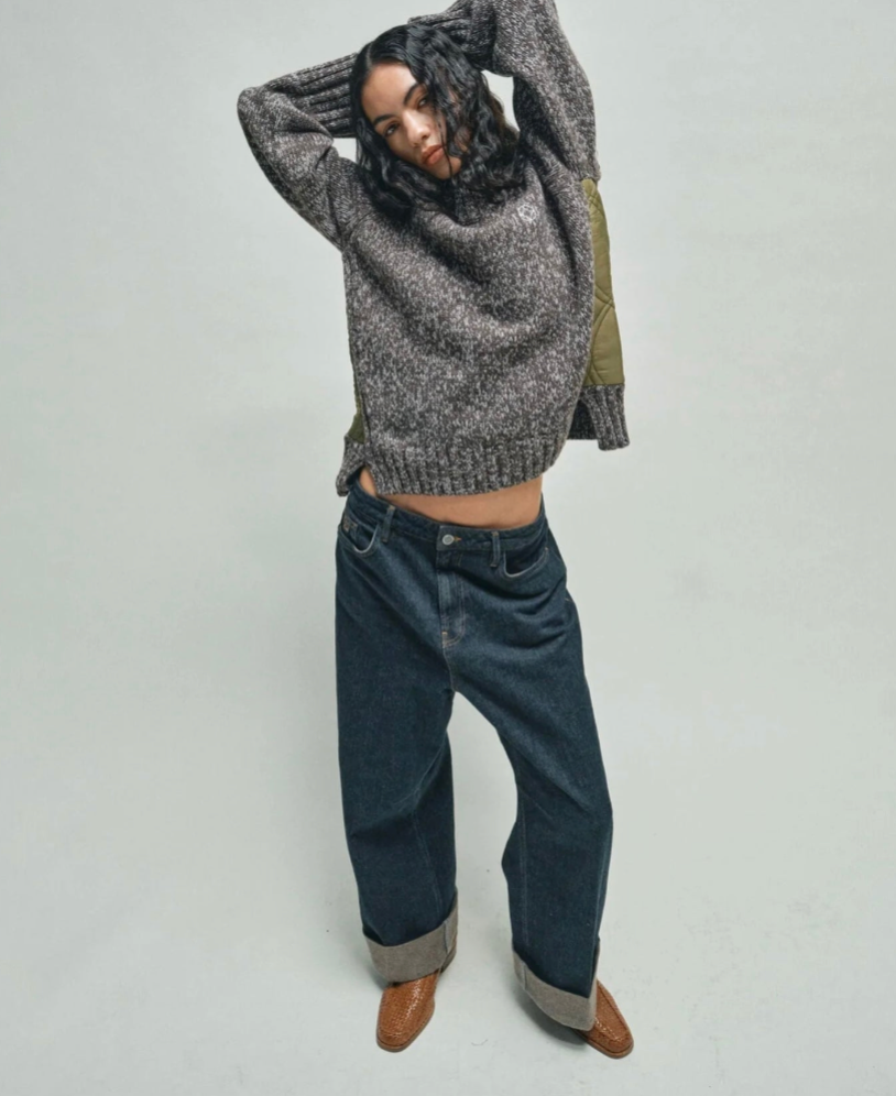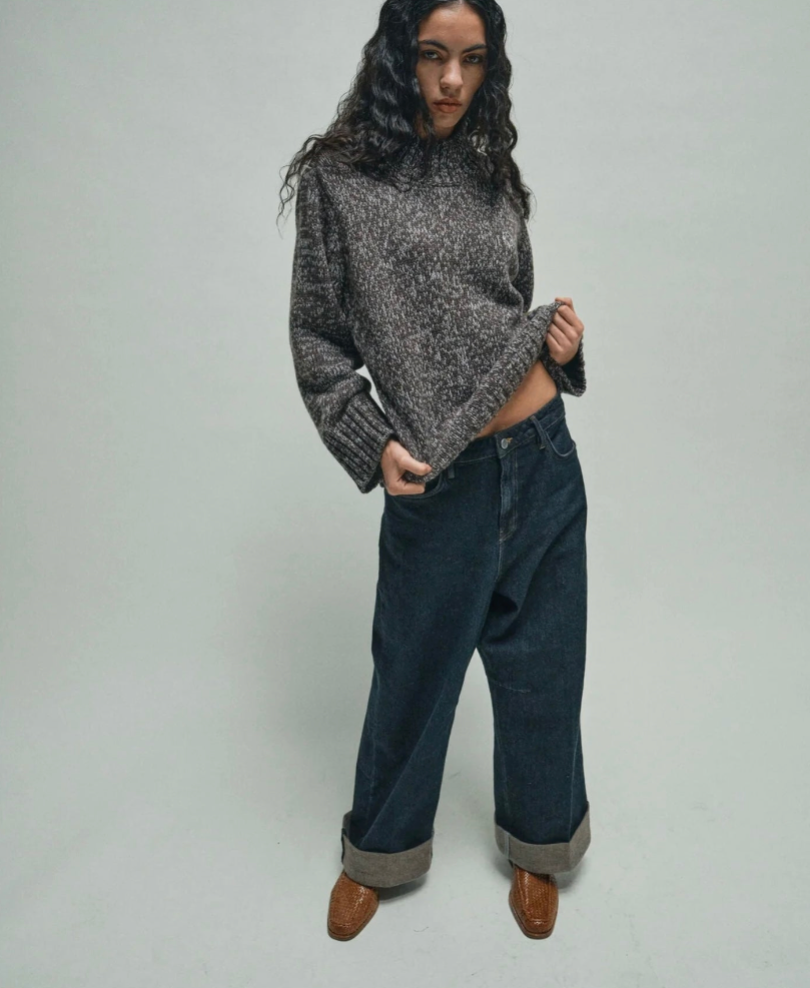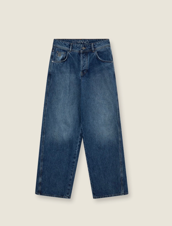Regular price €169.99 Save 0%Heyanno Mid Blue Soft Wide Leg Low Rise Turned Side Seam Denim Jeans.