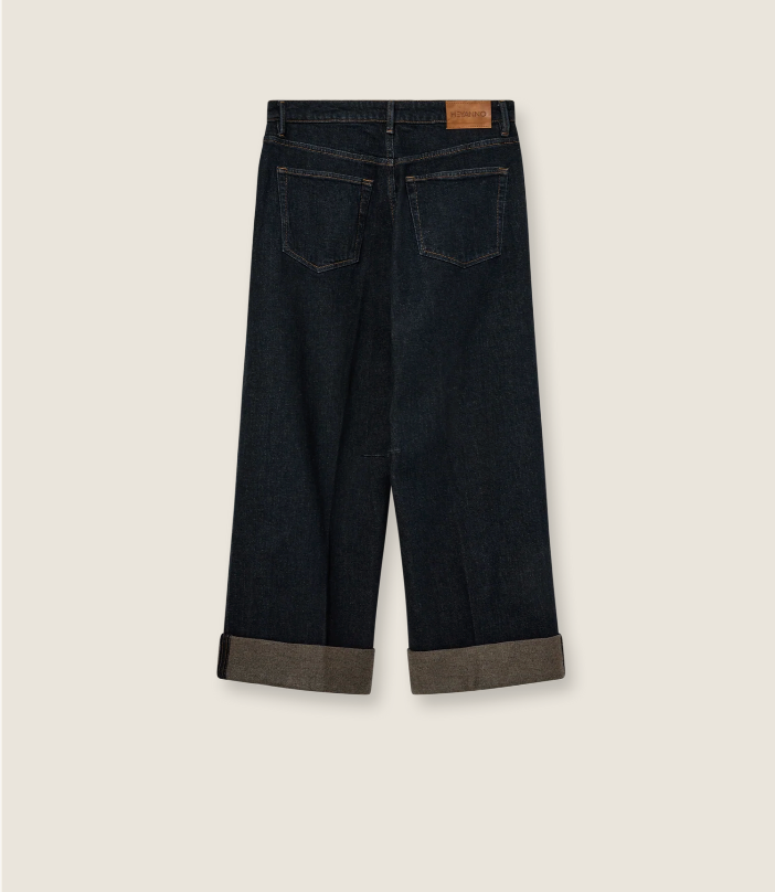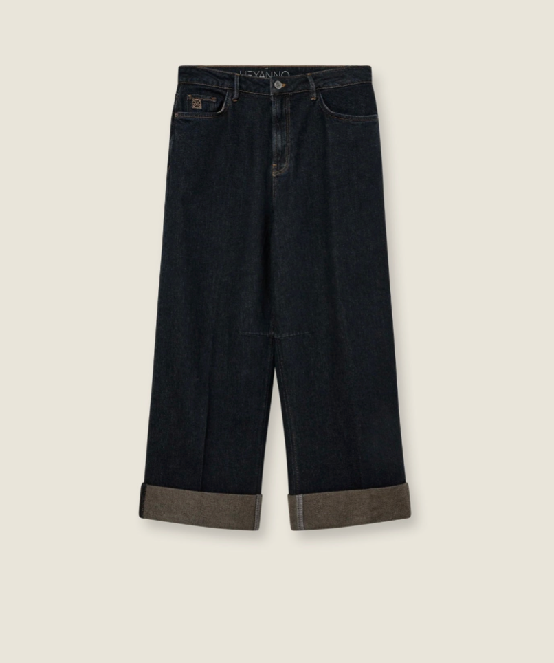 Regular price €149.99 Save 0%Heyanno Dark Blue Wide Leg Cropped Turn Up Vintage Style Denim Jean.
