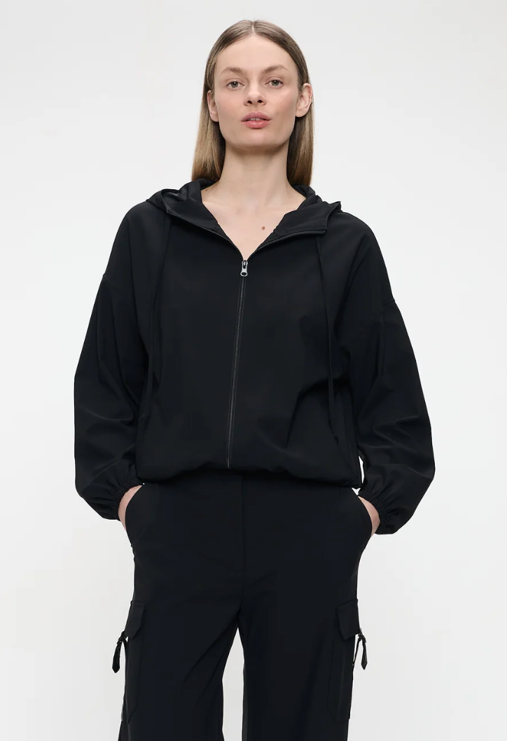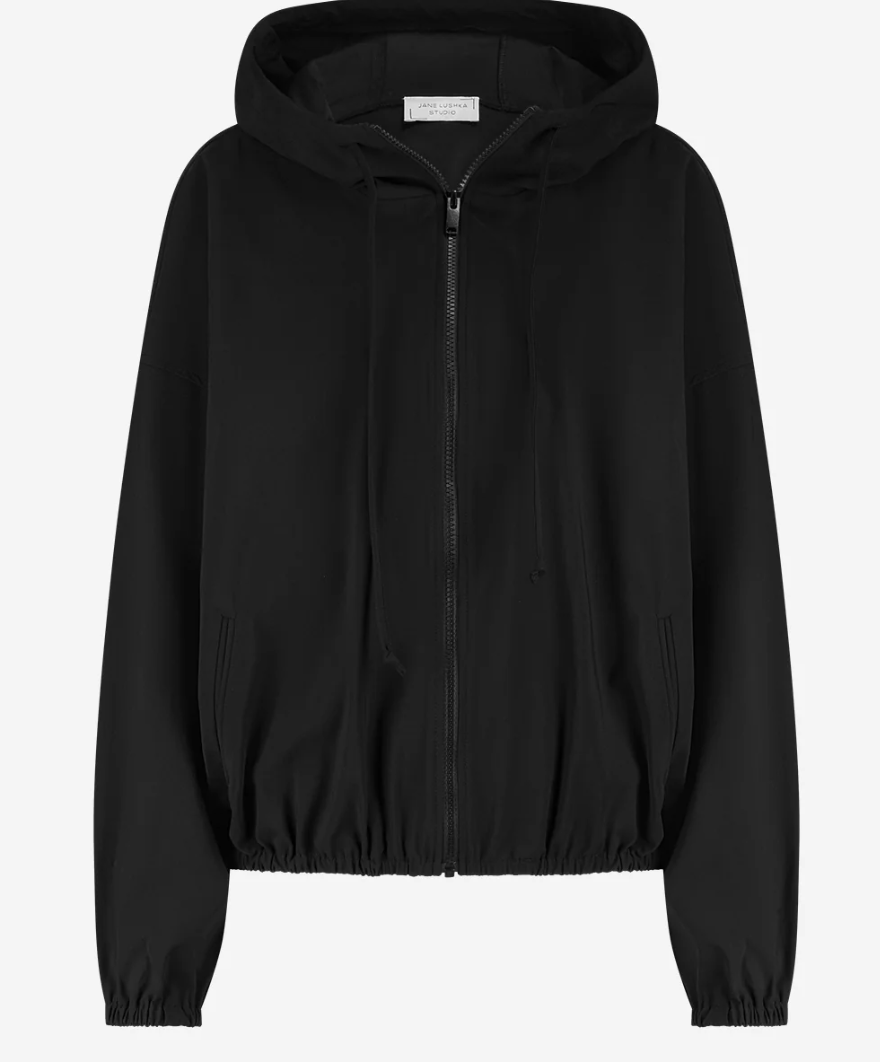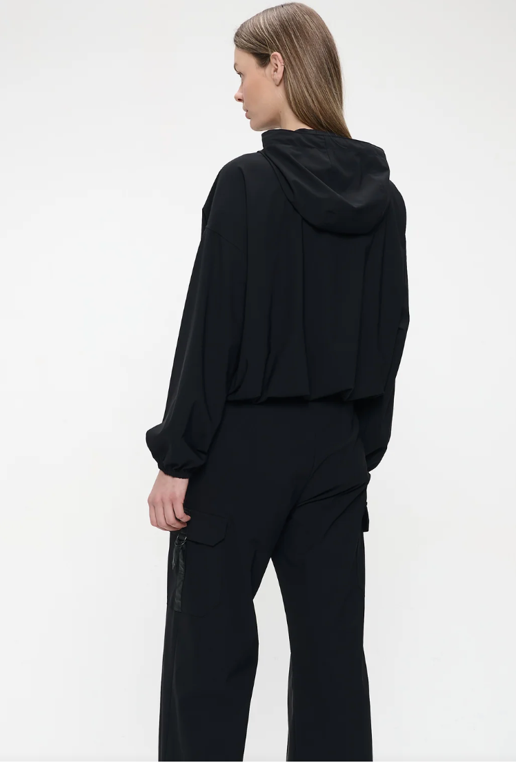 Regular price €189.95 Save 0%Jane Lusaka Black Technical Fabric Hooded Relaxed Boxed Fit Jacket.