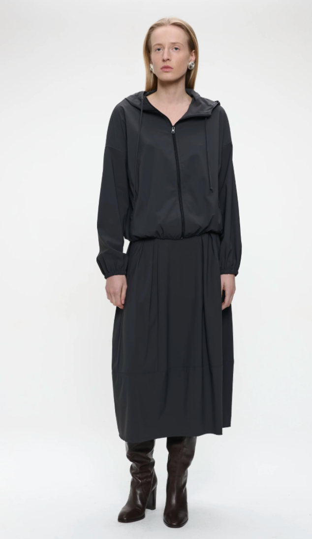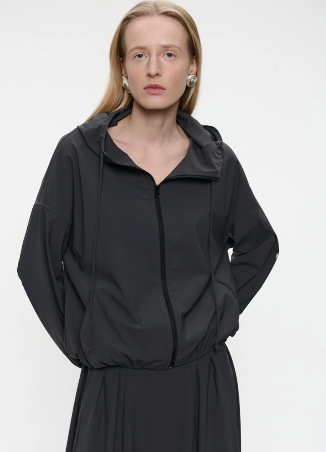 Regular price €189.95 Save 0%Jane Lusaka Grey Technical Fabric Hooded Relaxed Sporty Style Voluminous Fit Jacket.
