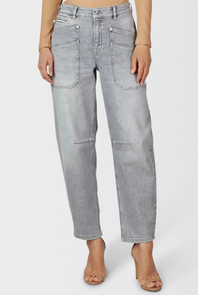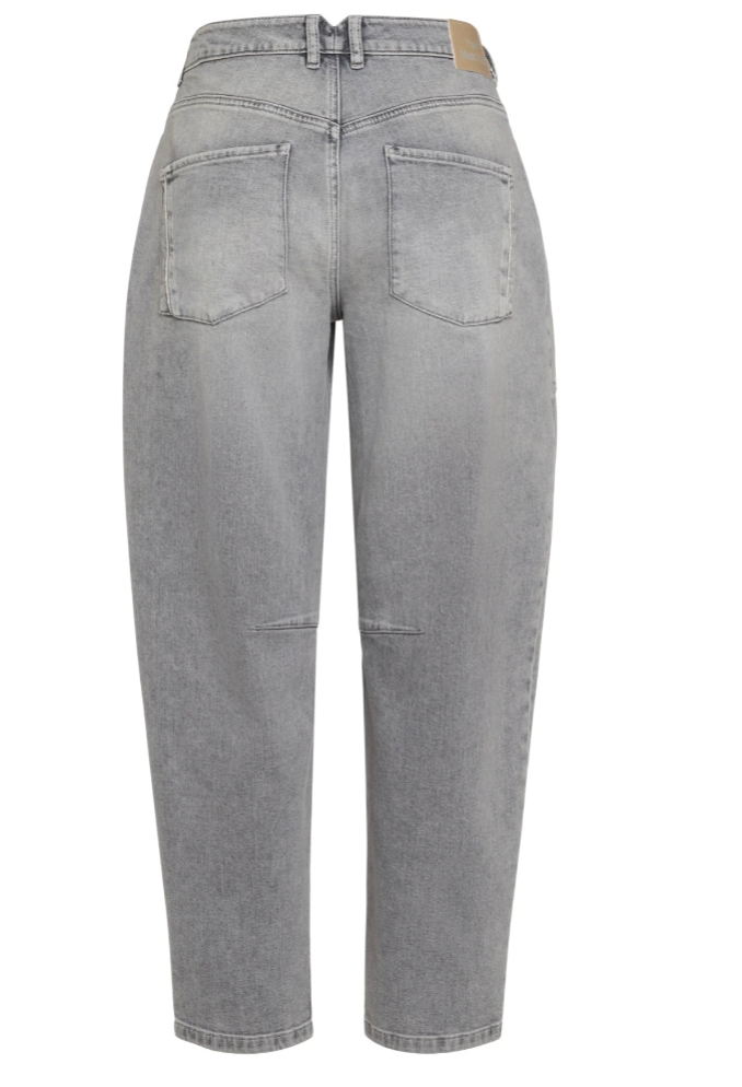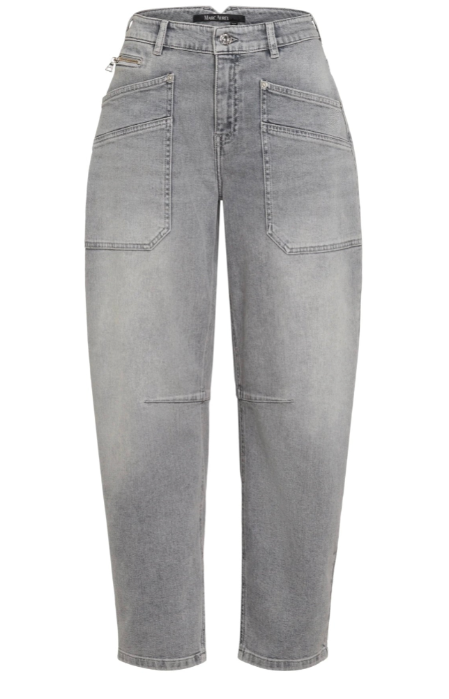 Regular price €175.00 Save 0%Marc Aurel Grey Cropped Stretch Denim Barrel Leg Loose Fit Jeans With Decorative Logo Detail.