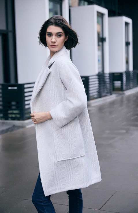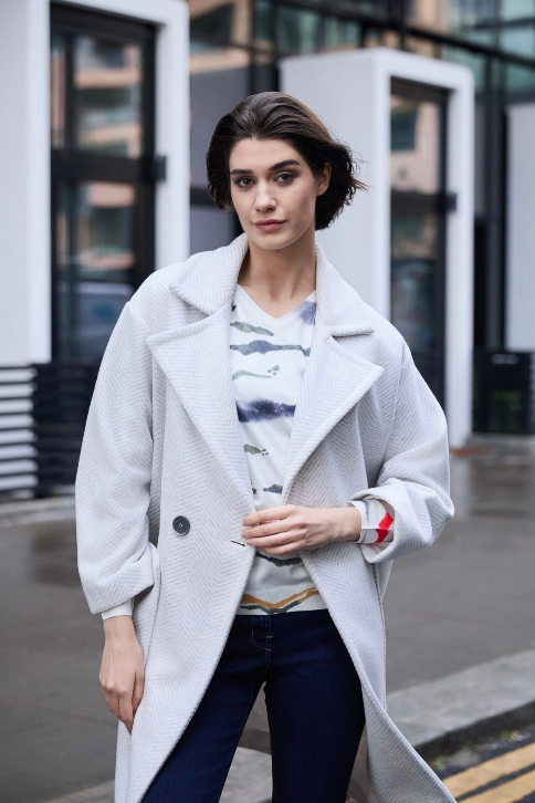Regular price €240.00 Save 0%Peruzzi Grey/Silver Herringbone Mid Length Double Breasted Patch Pocket Coat.