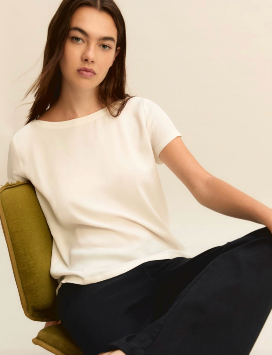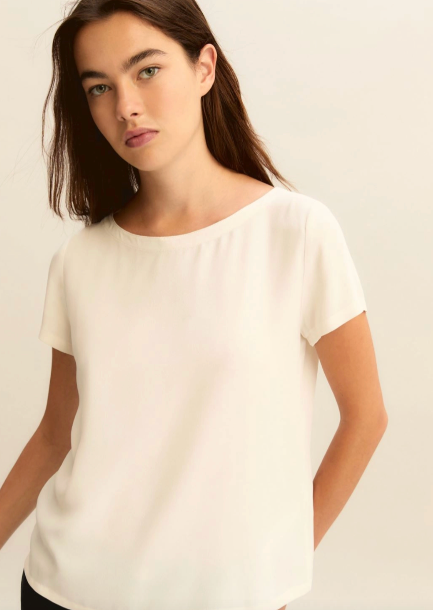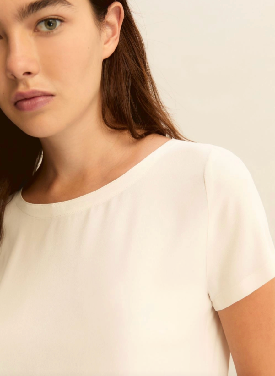 Regular price €95.00 Save 0%Emme Wool White Silk Blend Short Sleeve Top.
