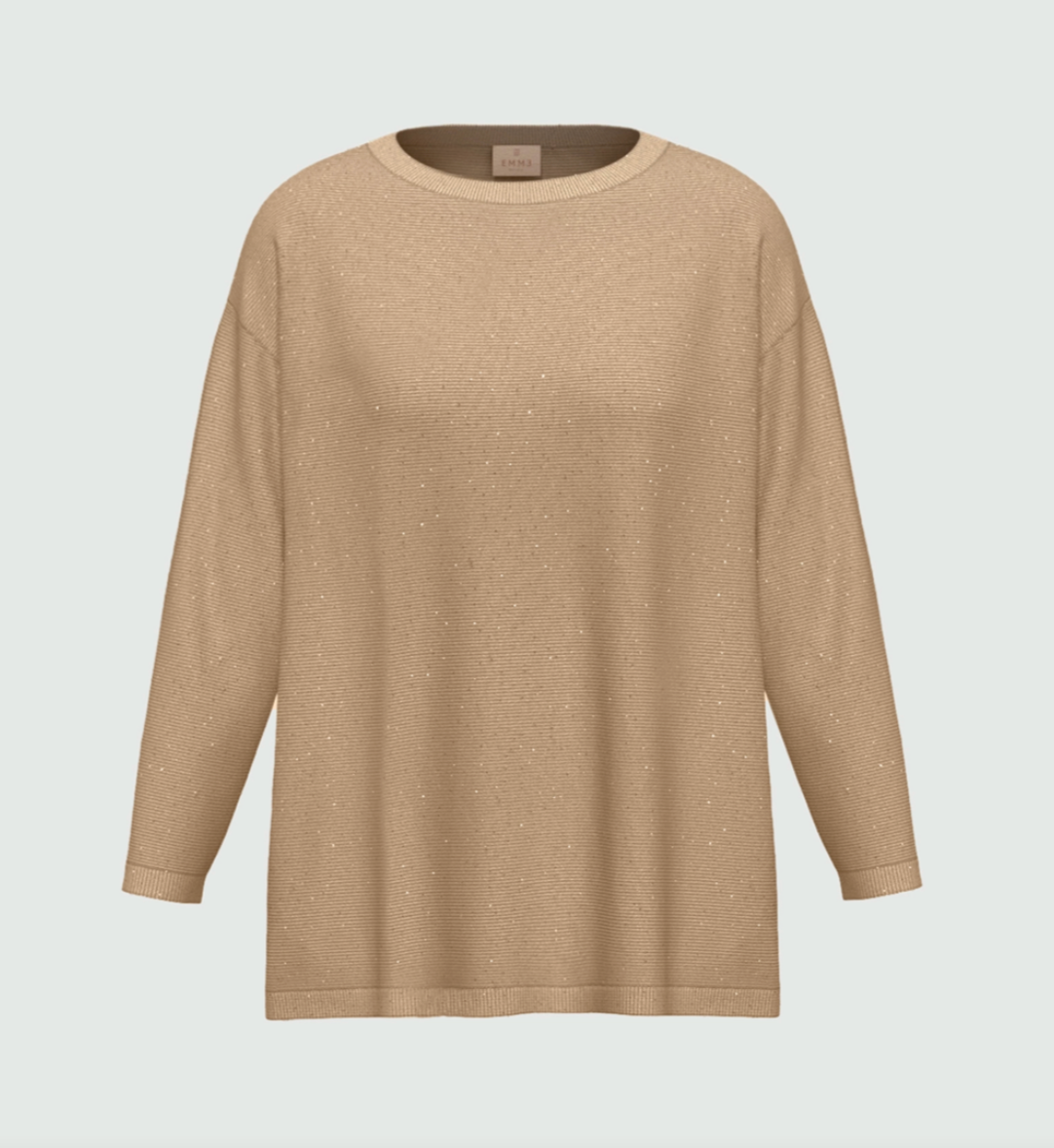Regular price €150.00 Save 0%Emme Gold Lurex Long Sleeve Fine Knit Wool Blend Sweater With Side Slit.