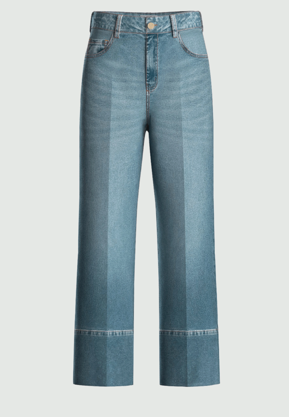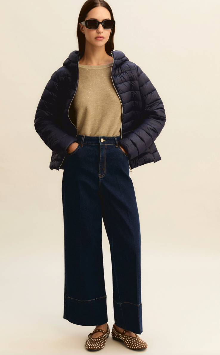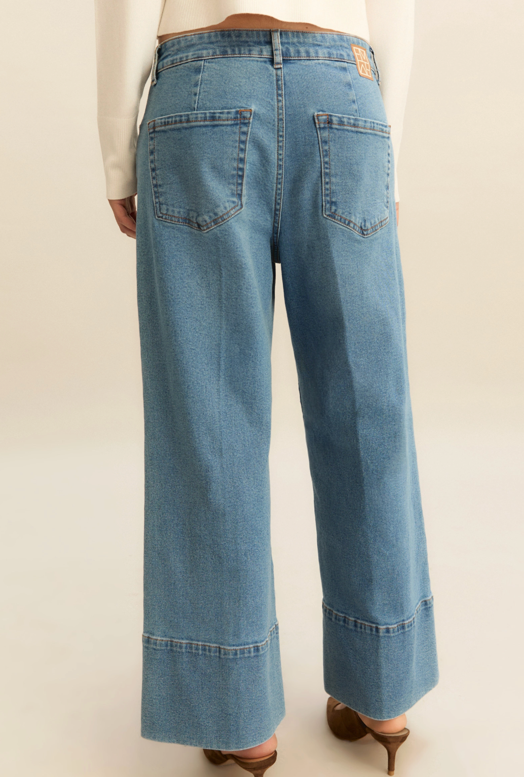 Regular price €110.00 Save 0%Emme Blue Cropped Straight Leg Denim Jean With Turn Up Detail.