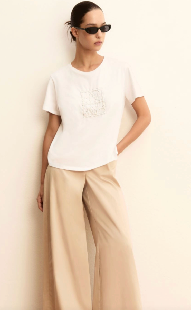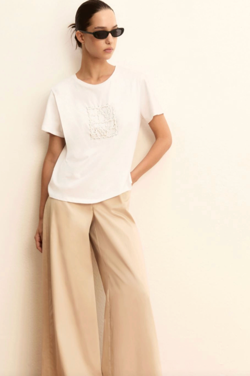 Regular price €85.00 Save 0%Emme White Logo Cotton T-Shirt With Sequin Logo Design.